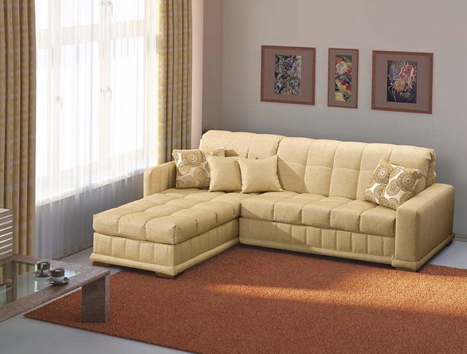 Выполненный в приятных бежевых тонах, угловой диван Чайка подойдёт и традиционному интерьеру, и комнате в этно или арт – стиле. Его отличительная особенность – необычное сочетание прострочки квадратами, по вертикали и широкого канта в нижней части. Ещё одна немаловажная стильная деталь – подушки из ткани – компаньона, делающие образ максимально уютным. Заказать угловой диван Чайка с механизмом «Аккордеон» и возможностью выбора ткани и экокожи для обивки заходите в наш интернет – магазин.