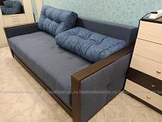 Диван этот заказывали с большей глубиной (1200). Спальное место в не разобранном виде получилось 96х190. Очень нравится материал на подушках приятный такой велюр. Основной материал обивки при заказе выбрали рогожку. Диван тяжелый, механизм внутри металлический. Имеется ящик вместительный. Довольны.