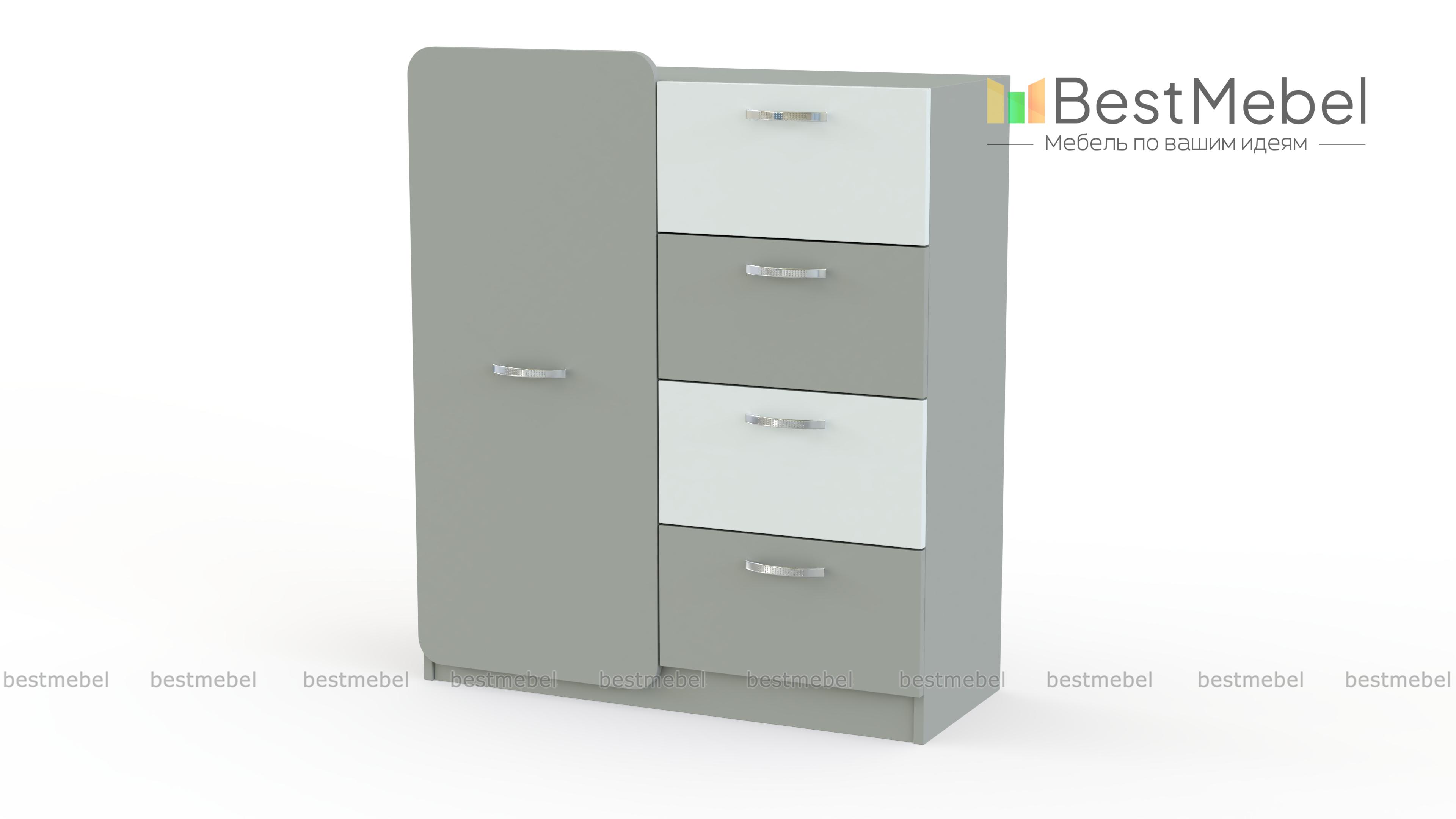 Комод Джасмин BMS выполнен из экологичных материалов и гармонично дополнит интерьер современной детской комнаты. Компактная, но вместительная модель оборудована четырьмя выдвижными ящиками и распашным отделением, в которых разместятся белье, игрушки, аксессуары и прочие вещи ребенка. Фасады светлых тонов под массив дерева с цветными вставками декорированы крупными оригинальными ручками. Купить комод Джасмин BMS вы сможете в нашем интернет-магазине, подобрав оптимальный вариант расцветки.