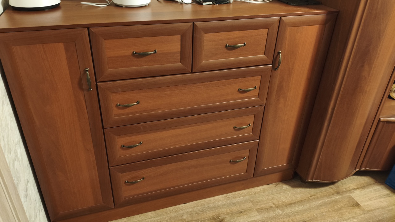 Спасибо за прекрасный комод. Комод очень вместительный, качественная фурнитура идёт в стандарте. Собрали сами, по сборке нареканий нет. Используем, как ТВ тумбу. По цвету идеально вписался к уже имеющейся стенке👍 Заказ 00000339383, изделие Комод Иван 2.4+2 ящика BMS (1560х900х500)