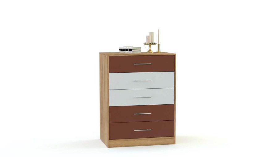 Комод Класс 13 BMS отличается ярким ультрасовременным дизайном, а компактные размеры делают его удачным выбором для малогабаритных помещений. Узкий комод с пятью выдвижными ящиками, оснащенными ручками-рейлингами, сделает удобным хранение одежды, аксессуаров и всевозможных бытовых мелочей, а столешница станет подставкой для предметов декора. Корпус в нейтральных древесных тонах дополнен матовым фасадом. Купить комод Класс 13 BMS приглашаем на сайт нашего интернет-магазина.