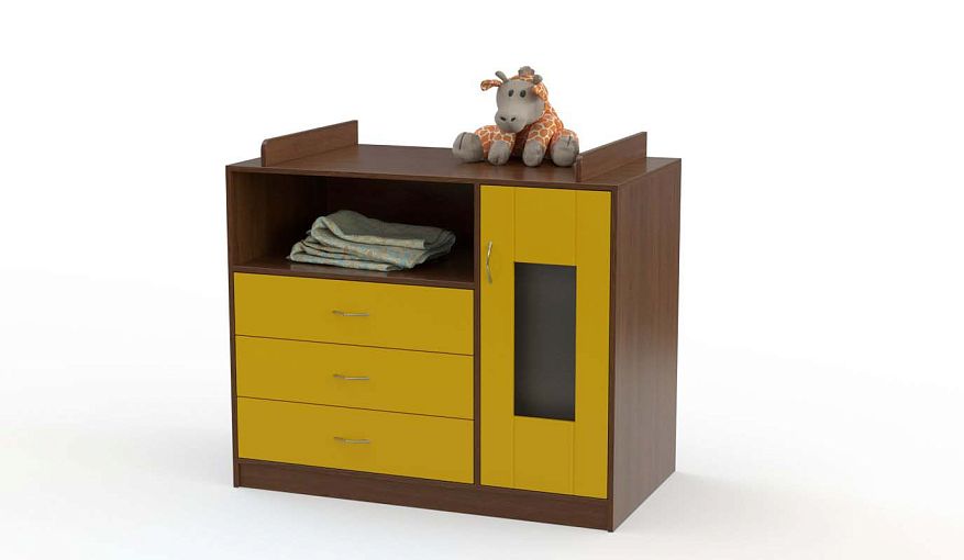 Комод пеленальный Соло 1 BMS – глубокий и устойчивый, отличается лаконичным современным дизайном. Продуманная система хранения включает в себя три выдвижных ящика, застекленное распашное отделение с фрезерованным фасадом и просторную нишу, в которой могут разместиться необходимые под рукой вещи. Встроенный пеленальный столик ограничен для безопасности малыша боковыми защитными бортиками. Купить комод пеленальный Соло 1 BMS вы сможете на сайте нашего интернет-магазина, подобрав наиболее подходящее цветовое решение.