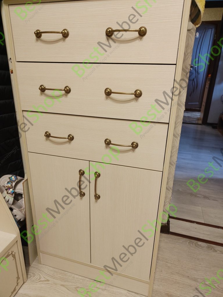 Отличный комод! Высокий сделали, что бы все вещи, которые нужно быстро достать, поместились. Удобно, что есть и выдвижные ящики и большой отсек за дверцами. Очень понравилось, что можно внести пожелания. Я поставила Скругление углов, чтобы не биться об него. Доставили быстро.