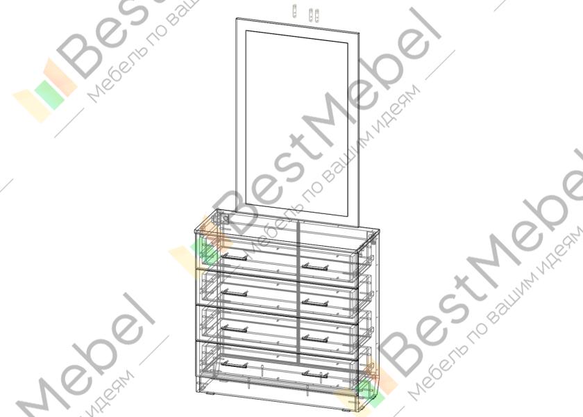 Комод Танго BMS выполнен из ламинированной плиты высокого качества в контрастных древесных тонах и оснащен парными ручками-рейлингами. В четырех просторных выдвижных ящиках удобно хранить одежду, постельное белье и аксессуары, а на широкой столешнице можно разместить уходовые средства и предметы декора. Практичным дополнением комода станет навесное прямоугольное зеркало с рамой в тон корпусу. Купить комод Танго BMS по доступной цене приглашаем в наш интернет-магазин.