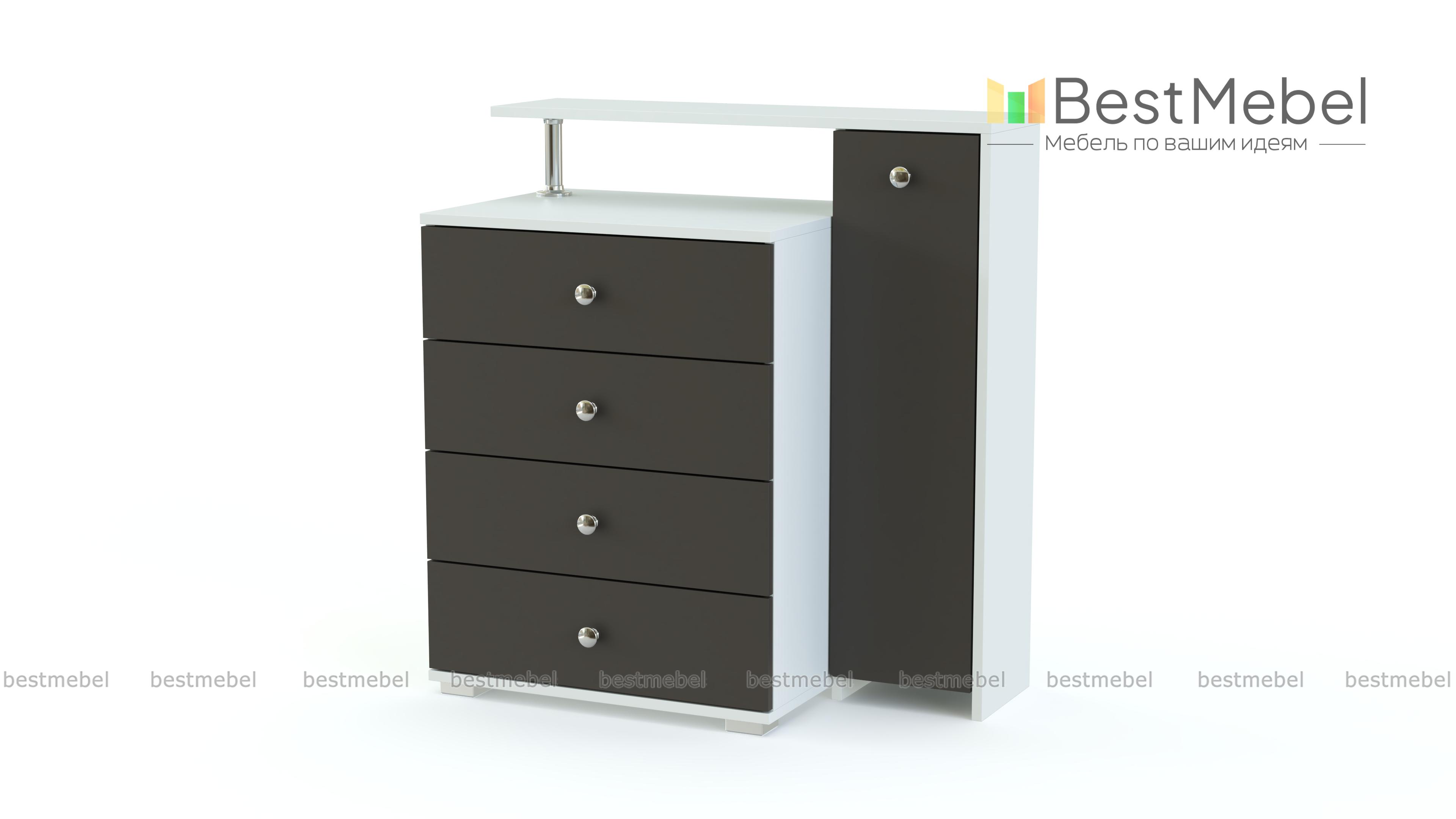Комод высокий BMS – гибрид вместительного комода и узкого распашного шкафа. Эта уникальная композиция может достойно занять место, как в частном доме, так и в офисе. Изящная фурнитура и стойка придают изделию одновременно дерзкий и утончённый вид. Современный дизайн вдохновляет каждого покупателя на покупку. Ведь он делает окружающее пространство намного ярче и прекраснее. Мебель выполнена из долговечных материалов, поэтому срок службы будет невероятно долгим. Купить комод высокий BMS можно на сайте нашего магазина по низкой цене.