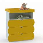 Пеленальный комод Трея 4 BMS отличают компактные размеры и оригинальный дизайн. Модель для уютной современной детской оборудована тремя выдвижными ящиками со скругленными фасадами и вырезными ручками и нишей, в которой могут храниться пеленки и необходимые под рукой гигиенические средства. Встроенный пеленальный столик с четырех сторон ограничен бортиками для безопасности малыша. Купить пеленальный комод Трея 4 BMS по доступной цене вы сможете на сайте нашего интернет-магазина.