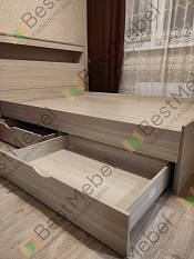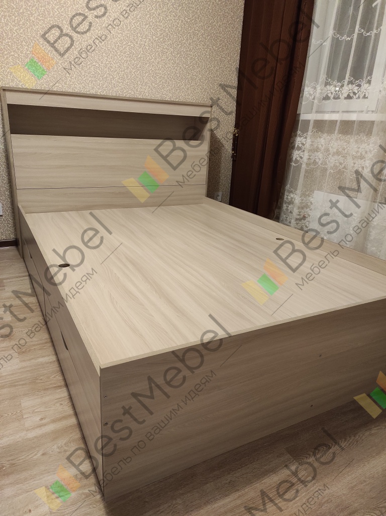 Очень крутая кровать, я в восторге! Лучше чем ожидала, очень тяжелая получилась и устойчивая. Полка просто супер! Ящик который внутри шикарный! Он во всю высоту, а это дополнительная ниша, от которой вы будете в восторге. Выдвижные ящики на колесиках, не обратила на это внимания при заказе. Один большой минус кровать собирали очень долго и нудно. Инструкция не понятна вообще. Собирали сами просто по фото из заказа. Заказывайте сборку, экономьте время и нервы)