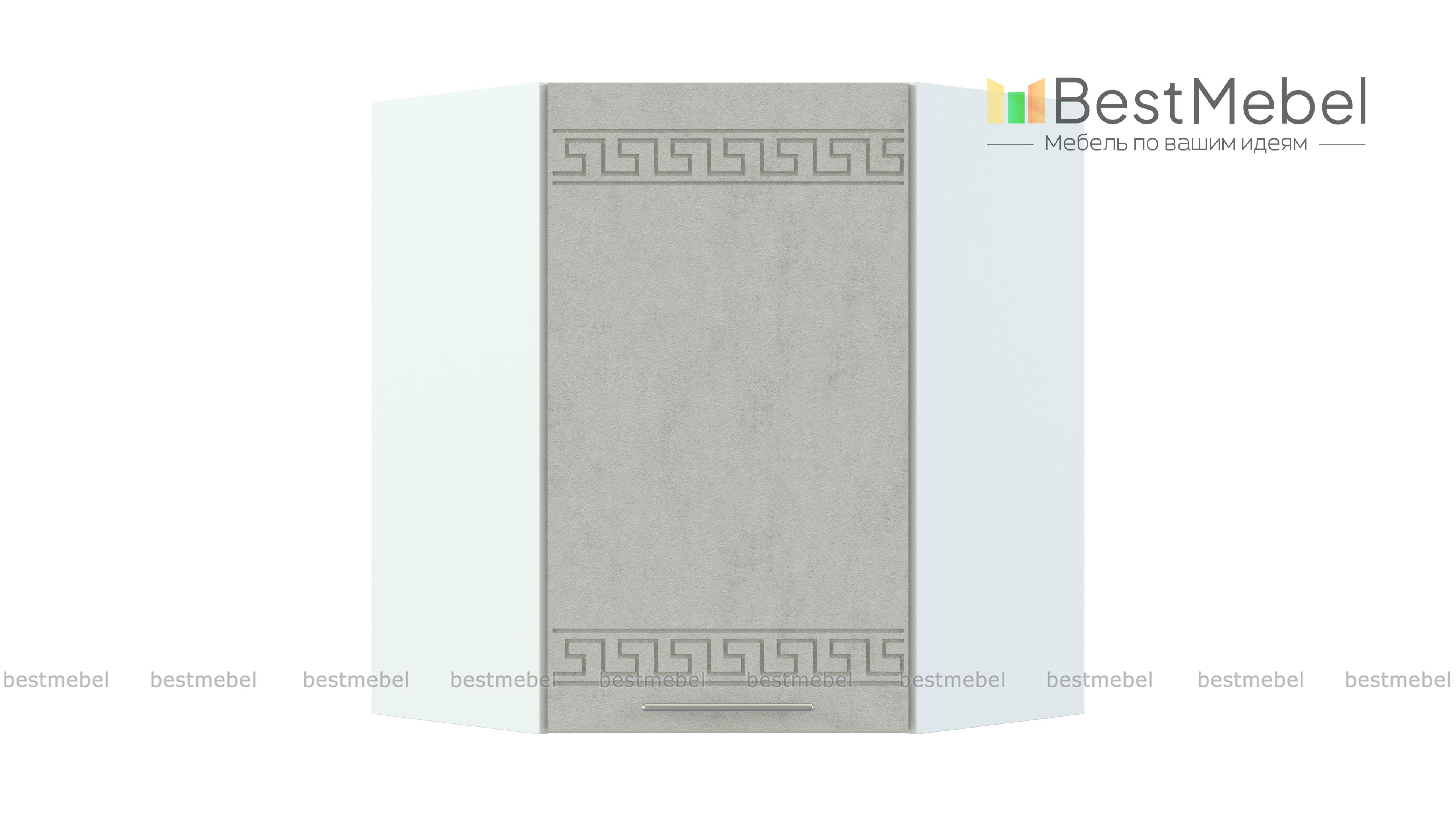 Шкаф навесной угловой 590 Греция BMS незаменим в комплекте Г-образной формы и служит для соединения модулей верхнего ряда. Компактный внешне, шкаф выгодно использует угловое пространство. За глухой распашной дверцей – просторное отделение с полкой для хранения кухонных принадлежностей. Фасад, выполненный в белом матовом оттенке, украшен орнаментом и отличается устойчивостью к влаге, механическим повреждениям и простотой ухода. Купить шкаф навесной угловой 590 Греция BMS по демократичной цене вы сможете в нашем интернет-магазине.