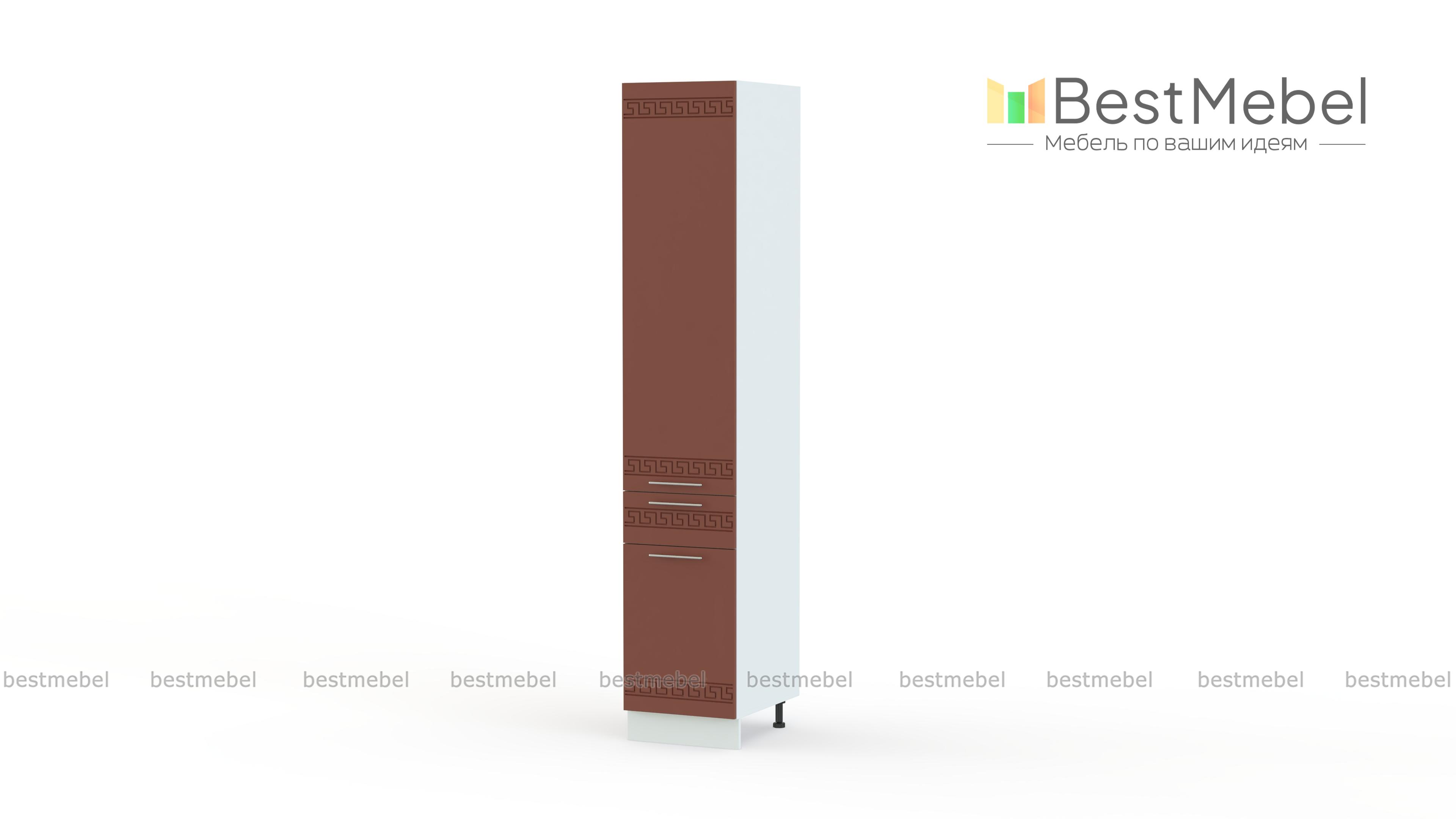 Шкаф-пенал 1 ящик 400 Греция BMS – это компактные размеры, отличная вместительность и демократичная цена. Высокий узкий шкаф оборудован двумя распашными отделениями с полками для продуктов и кухонной утвари и выдвижным ящиком, удобным для мелких вещей. Фасады в белом матовом оттенке с орнаментом не только эффектно смотрятся, но и надолго сохранят эстетичный вид благодаря износостойким материалам. Купить шкаф-пенал 1 ящик 400 Греция BMS, простой в уходе и надежный в эксплуатации, приглашаем недорого в наш интернет-магазин.