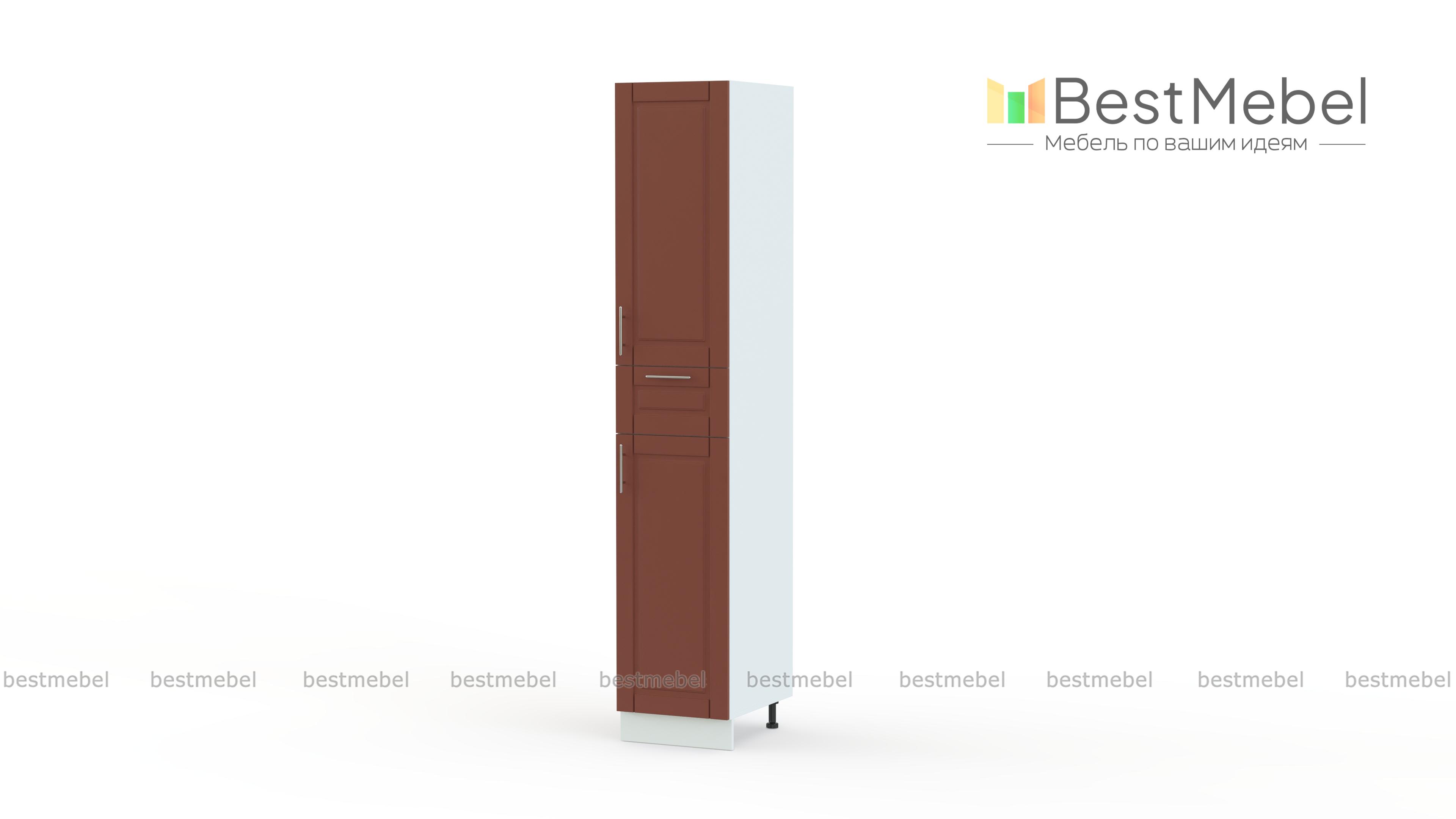 Шкаф-пенал 2 двери 1 ящик Палермо BMS дополнит меблировку просторной кухни удобной системой хранения. Элегантная модель может использоваться как в комплекте с другими предметами серии в популярном стиле кантри, так и независимо. Комбинированный шкаф оборудован распашными отделениями с полками и выдвижным ящиком для мелочей в центральной части, что позволит компактно разместить как мелкие вещи, так и габаритные предметы, посуду, продукты. Купить шкаф-пенал 2 двери 1 ящик Палермо BMS, эффектный и надежный в эксплуатации, приглашаем в наш интернет-магазин.