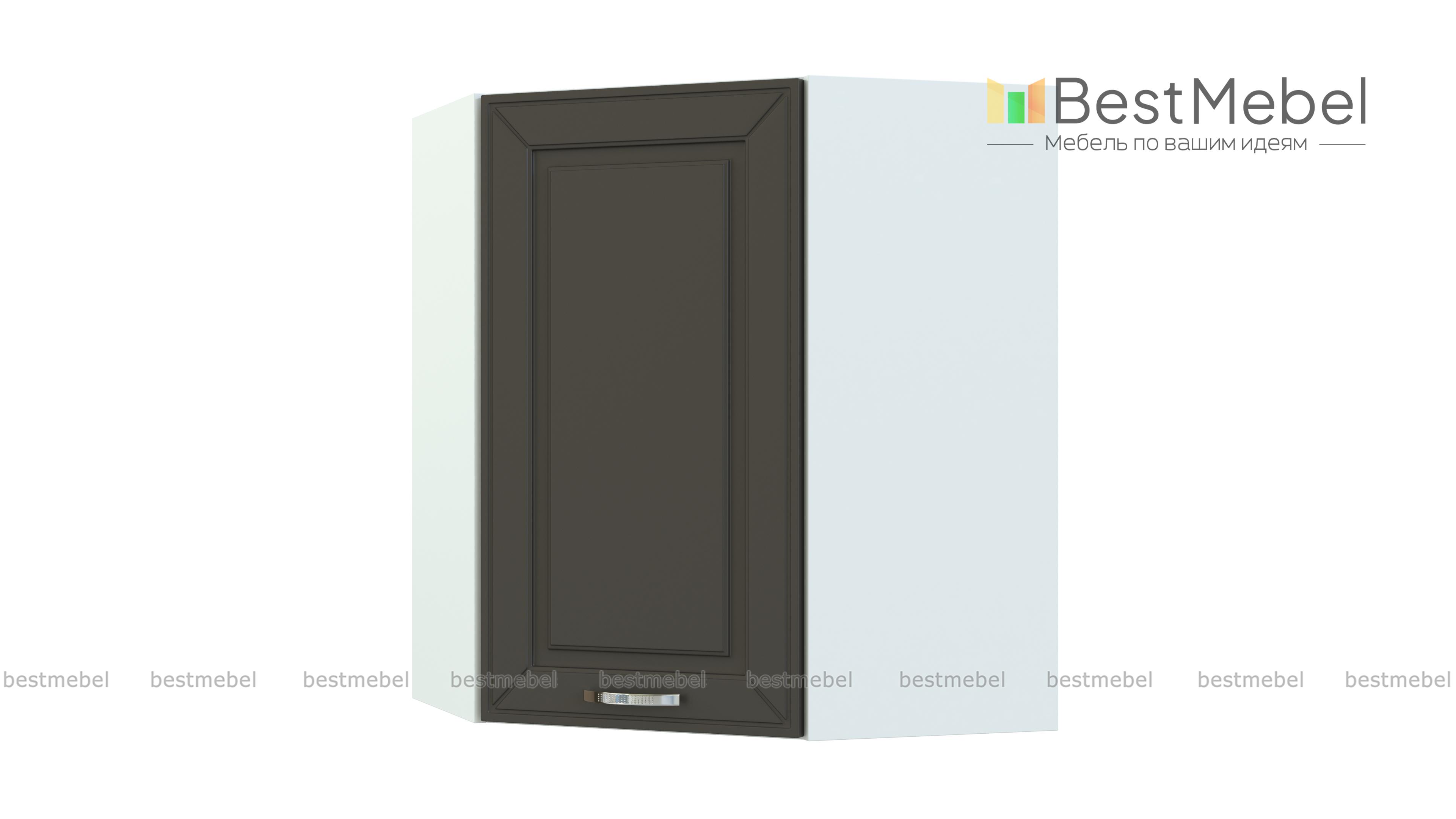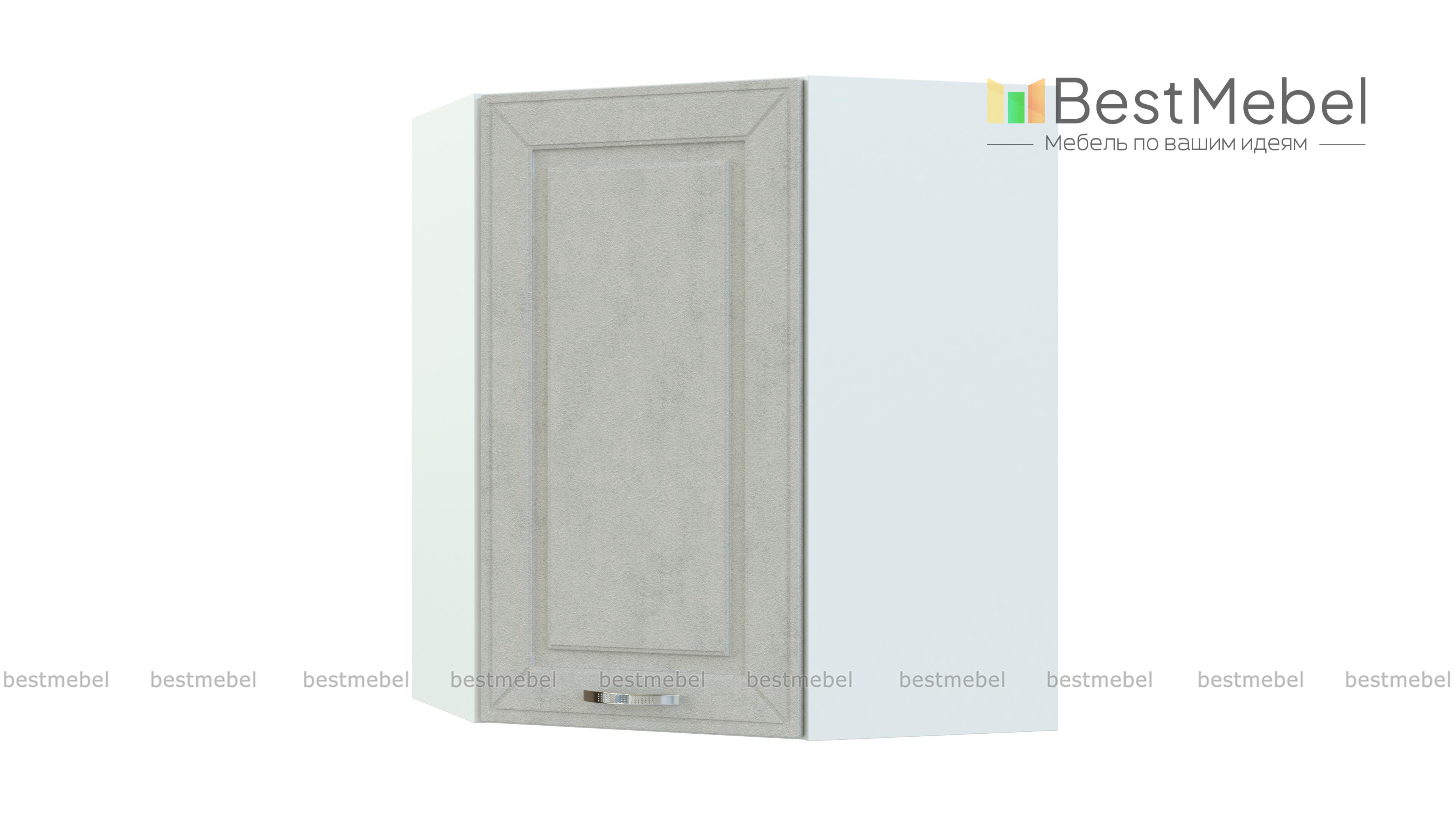 Шкаф угловой Маргарита BMS служит для стыковки прямых модулей в комплекте Г-образной формы. Трапециевидная конструкция отличается внешней компактностью, вместительностью и позволяет эффективно задействовать угловое пространство. За распашной дверцей с изящным фрезерованным фасадом в стиле прованс вы найдете просторное отделение, разделенное полкой. Купить шкаф угловой Маргарита BMS и разместить посуду, продукты и множество мелочей вы сможете с помощью нашего интернет-магазина.