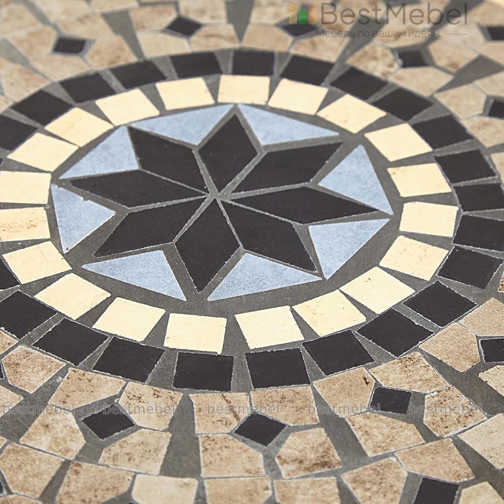 Стол Ромео вы сможете использовать как часть модульного комплекта или стильный акцент. Модель выполнена из высококачественного стального сплава, создавая прочную и визуально легкую конструкцию, которая не боится перепадов температур и солнечных лучей. Круглая столешница, декорированная оригинальным винтажным орнаментом из мозаики, поможет эффектно сервировать обед или разместить предметы декора. Купить стол Ромео для меблировки балкона, веранды или гостиной загородного дома вы сможете в нашем интернет-магазине.