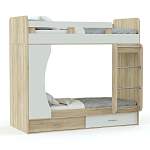 Детская двухъярусная кровать ДМ 112 BMS привлекательно выглядит благодаря современному дизайну. Практичность изделия составляет ее продуманная конструкция, создающая комфортную спальню двоим владельцам. «Этажи» соединены лестницей с металлическими ступенями. Верхняя постель оснащена бортиками для защиты спящего или играющего ребенка, есть изголовье, изножье. Под основанием нижней расположились выдвижные ящики большой вместимости с удобными ручками. Материал – ЛДСП, кромка ПВХ. Расцветка разнообразная: яркие и сдержанные варианты, гармонично смотрится комбинация оттенков.