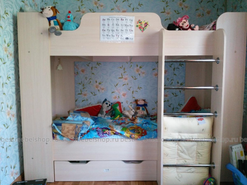 Две кровати практически полностью съедали все место в детской, поэтому было принято решение купить двухъярусную кровать. Когда привезли это тяжеленное чудище, мы слегка оробели, а инструкция по сборке внесла еще большую сумятицу. Но, как говорится глаза боятся, а руки делают. Кровать собирали вдвоем с мужем. Да было тяжеловато, но мы справились, и сейчас наши дети с удовольствием спят на этой кровати, а в детской комнате наконец-то появилось свободное место для веселых игр. Конструкция надежная и прочная, бортики на втором ярусе предохраняют ребенка от падения. Нижний ярус просто сказка, детки очень любят делать из него маленький домик и с удовольствием там играют. Наличие выдвижного ящика позволяет убирать постельное белье или игрушки, а ниша под лестницей стала излюбленным местом для игры в прятки. Желающим ее приобрести маленький совет: не поскупитесь и закажите нормальную окантовку, поскольку стандартная имеет довольно острые кромки и приводит к порезам. Производителя прошу учесть этот нюанс и делать кровать с безопасной окантовкой в базовом исполнении. Заказ №298953