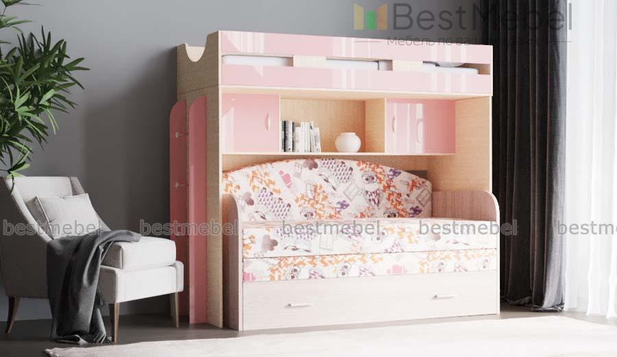 Кровать-чердак с диваном Пума 4 BMS станет отличным вариантом для организации пространства небольшой детской. Двухъярусная композиция, объединившая зону отдыха с удобной системой хранения, позволит сэкономить полезную площадь для игр. На втором ярусе располагается спальное место с бортиком, на первом – мини-диван и книжные полки, а с торца – вертикальная лестница с хромированными перекладинами. Купить кровать-чердак с диваном Пума 4 BMS вы сможете в нашем интернет-магазине, подобрав цветовое решение для комнаты мальчика или девочки.