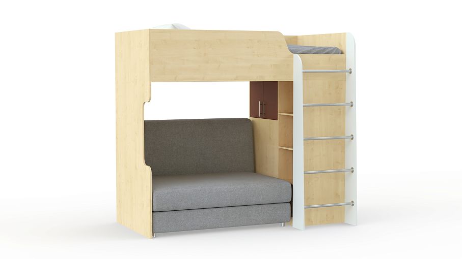 Кровать с диваном Карон 06 BMS оборудована всем самым необходимым для комфортного отдыха и хранения детских вещей. На втором ярусе располагается спальное место с ограничителем, а на первом – распашной шкаф для одежды, книжный стеллаж, лестница с металлическими трубными перекладинами и уютный диван. Несколько ярких цветовых решений на выбор помогут легко вписать модель в современный интерьер. Купить кровать с диваном Карон 06 BMS приглашаем в наш интернет-магазин по доступной цене.