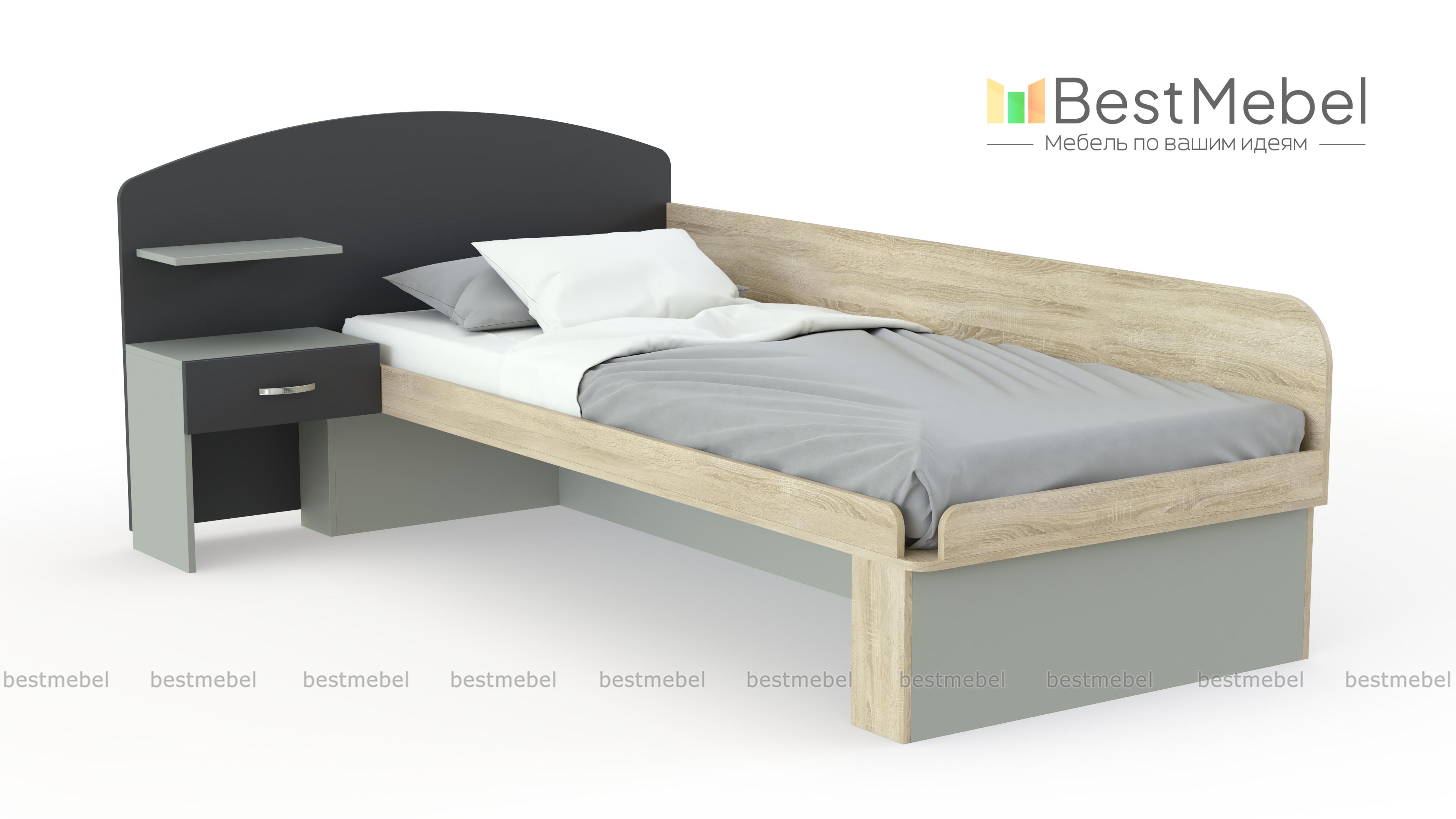 Кровать T-L-22 Ed BMS представляет собой многофункциональную композицию, которая поможет выгодно использовать пространство и гармонично впишется в интерьер детской или подростковой комнаты. Модель, выполненная в сочетании древесных тонов и контрастных элементов, оборудована комфортным спальным местом со скругленным бортиком. Широкая панель в изголовье составляет единое целое с открытой полочкой и тумбой для необходимых под рукой мелочей из одного выдвижного ящика. Купить кровать T-L-22 Ed BMS приглашаем в наш интернет-магазин.