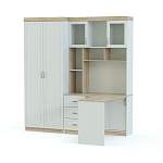 Шкаф со столом Классик 21 BMS обеспечит значительную экономию пространства, объединив систему хранения и рабочее место. Практичная угловая композиция включает в себя двухдверный платяной шкаф, две тумбы – с выдвижными ящиками и раздвижную, открытые и застекленные полки для книг, а также письменный стол с просторной столешницей. Классические фрезерованные фасады белого цвета дополнены древесными акцентами. Купить шкаф со столом Классик 21 BMS для меблировки молодежной комнаты вы сможете в нашем интернет-магазине.