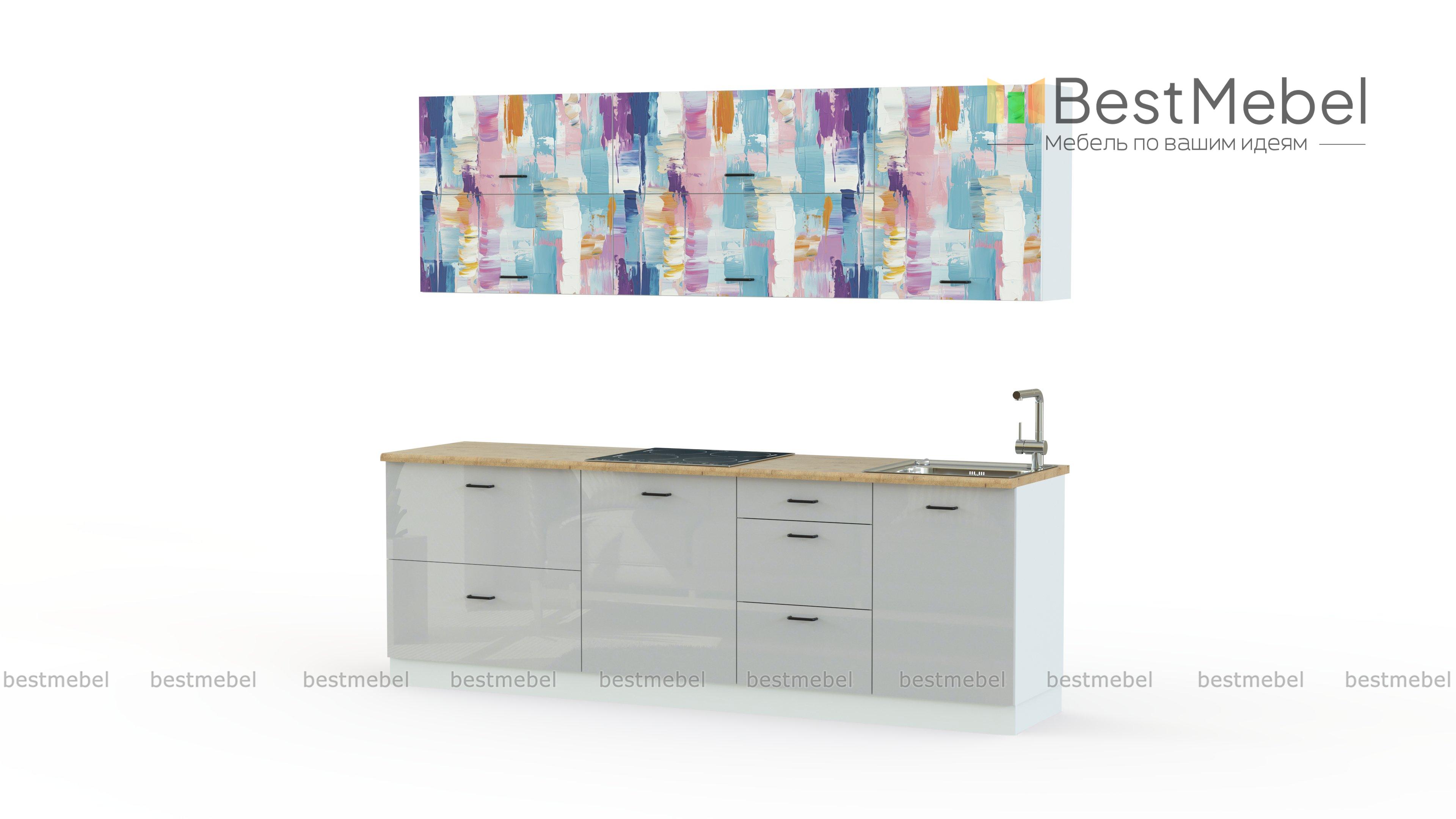 Кухня Альберта 22 BMS поможет создать комфортный и по-летнему свежий интерьер. Чуть размытая цветная абстракция на верхних фасадах придает эксклюзивность этому лаконичному в основе дизайну. В комплекте распашные шкафы, тумбы с выдвижными ящиками для хранения кухонной утвари и горизонтальные навесные модули с открывающимися вверх дверцами. Купить кухню Альберта 22 BMS с индивидуальным подбором размеров и цветовой гаммы вы сможете в нашем интернет-магазине.