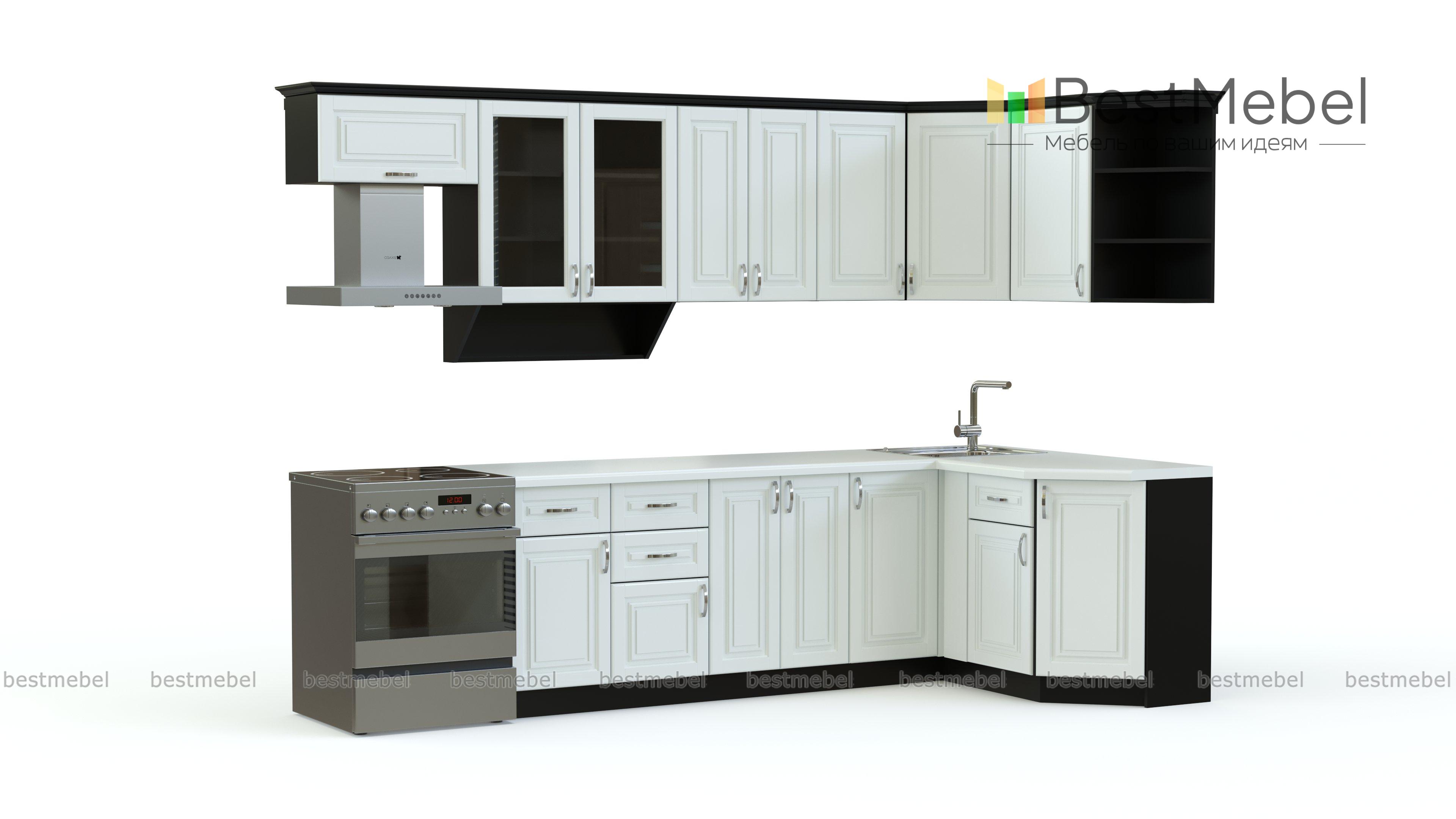 Тем, кто ценит добротную классику, стоит обратить внимание на кухню Беларусь У-3 BMS. Выполненная в контрастном сочетании бежевых матовых фасадов и черного корпуса, она смотрится стильно и респектабельно. Большое количество модулей подойдет для обустройства просторного помещения. Наличие распашных отделений, выдвижных ящиков и открытых полок обеспечит аккуратное размещение множеству кухонных принадлежностей. Фасады декорированы неброским рисунком и элегантной фурнитурой.