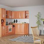Заказала кухню в интернете, потому что так выходит дешевле. Места у меня в квартире много и искала именно такую модель, чтоб гармонично заполнить пространство. Вначале смутил цвет, ольха мне никак не подходила, потом выяснилось, что цвет я могу выбирать. В цвете вишни она смотрится ничуть не хуже на мой вкус. Кухня сама очень удобная, вместительная, радует такое большое количество полочек и ящичков.