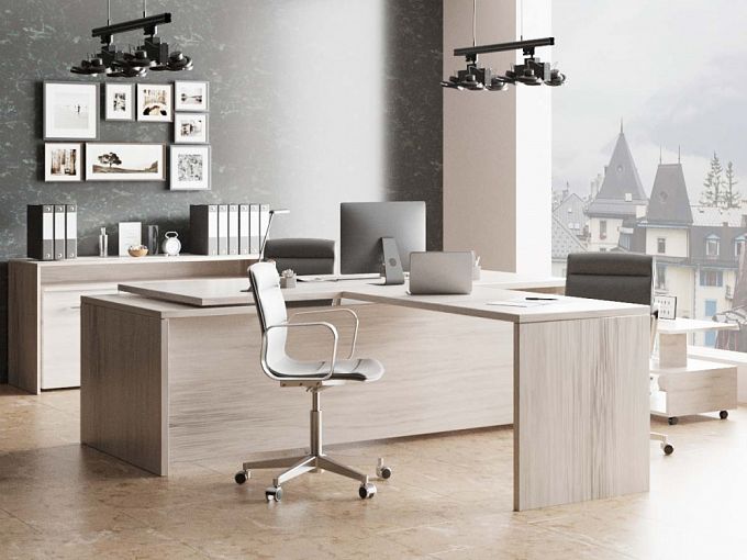 Кабинет руководителя Мирма 2 BMS отвечает современным мебельным тенденциям, сочетая в себе функциональность и эргономичность. Композиция объединила рабочий стол с незаменимой для проведения переговоров брифинг-приставкой, широкую тумбу с фригобаром и мобильный журнальный столик. Геометричные по форме, предметы выполнены в светлых тонах под массив дерева. Купить кабинет руководителя Мирма 2 BMS и оборудовать комфортное рабочее пространство вам поможет наш интернет-магазин.