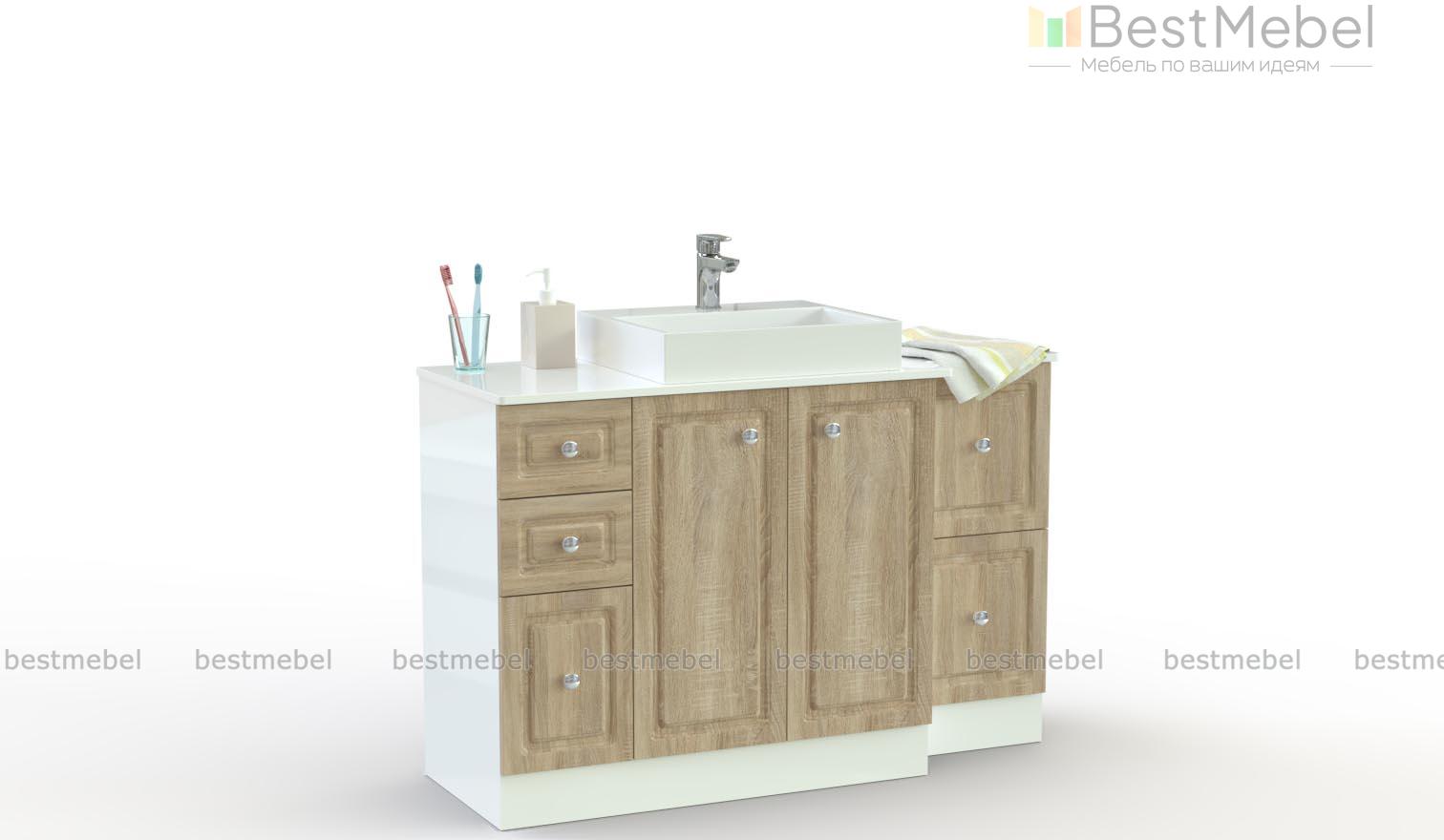 Тумба для ванной Долли 5 BMS – это классическая модель для больших комнат с белоснежными фрезерованными фасадами. Напольная модель с глухим цоколем оборудована двухдверным распашным отделением и выдвижными ящиками разной глубины для удобного хранения гигиенических принадлежностей, бытовой химии и еще многого другого. Дополнительной рабочей поверхностью станет широкая столешница под накладную раковину. Купить тумбу для ванной Долли 5 BMS вы сможете по лучшей цене в нашем интернет-магазине.