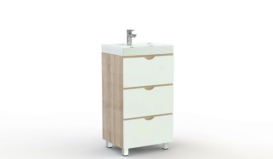 Тумба в ванную Атлант 14 BMS отличается современным дизайном и выполнена в контрастном сочетании древесного корпуса и светлого оттенка на фасадах. Модель под раковину располагается на устойчивых ножках и оборудована тремя выдвижными ящиками с ручками-вырезами. Практичная конструкция позволит вам компактно разместить необходимые под рукой аксессуары, уходовые средства и прочие нужные мелочи. Купить тумбу в ванную Атлант 14 BMS и сделать интерьер функциональным вам поможет наш интернет-магазин.