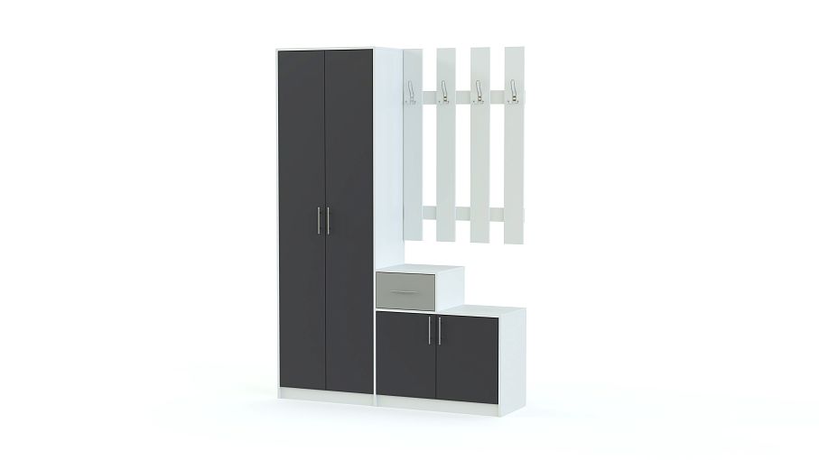 Стенка-прихожая «Идеал 29» BMS – стильная модель, строгие геометрические линии которой идеально сочетаются с контрастной расцветкой. Небольшая, но вместительная, стенка станет отличным выбором для малогабаритных помещений. В комплекте двухдверный шкаф с выдвижной штангой, панель с крючками и стандартная распашная тумба. Фасады – насыщенный темный оттенок, корпус универсальный, белый. Купить стенку-прихожую «Идеал 29» BMS вы всегда сможете недорого в нашем интернет-магазине.