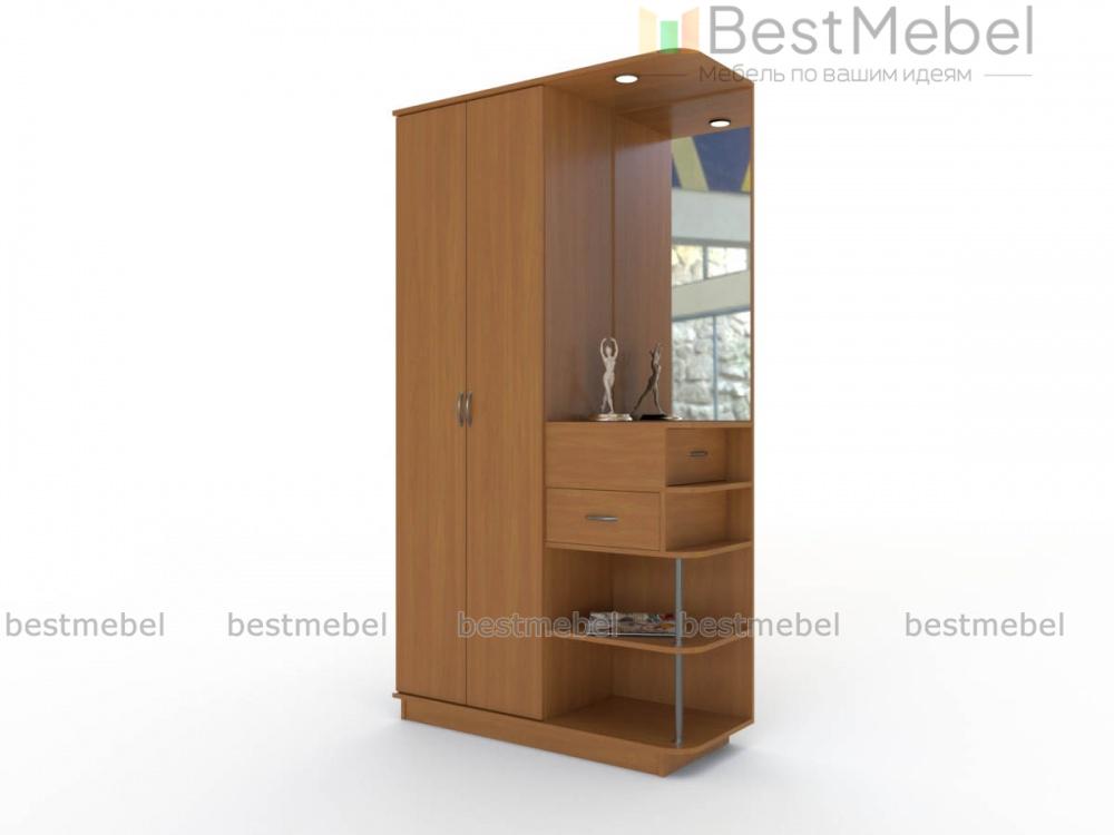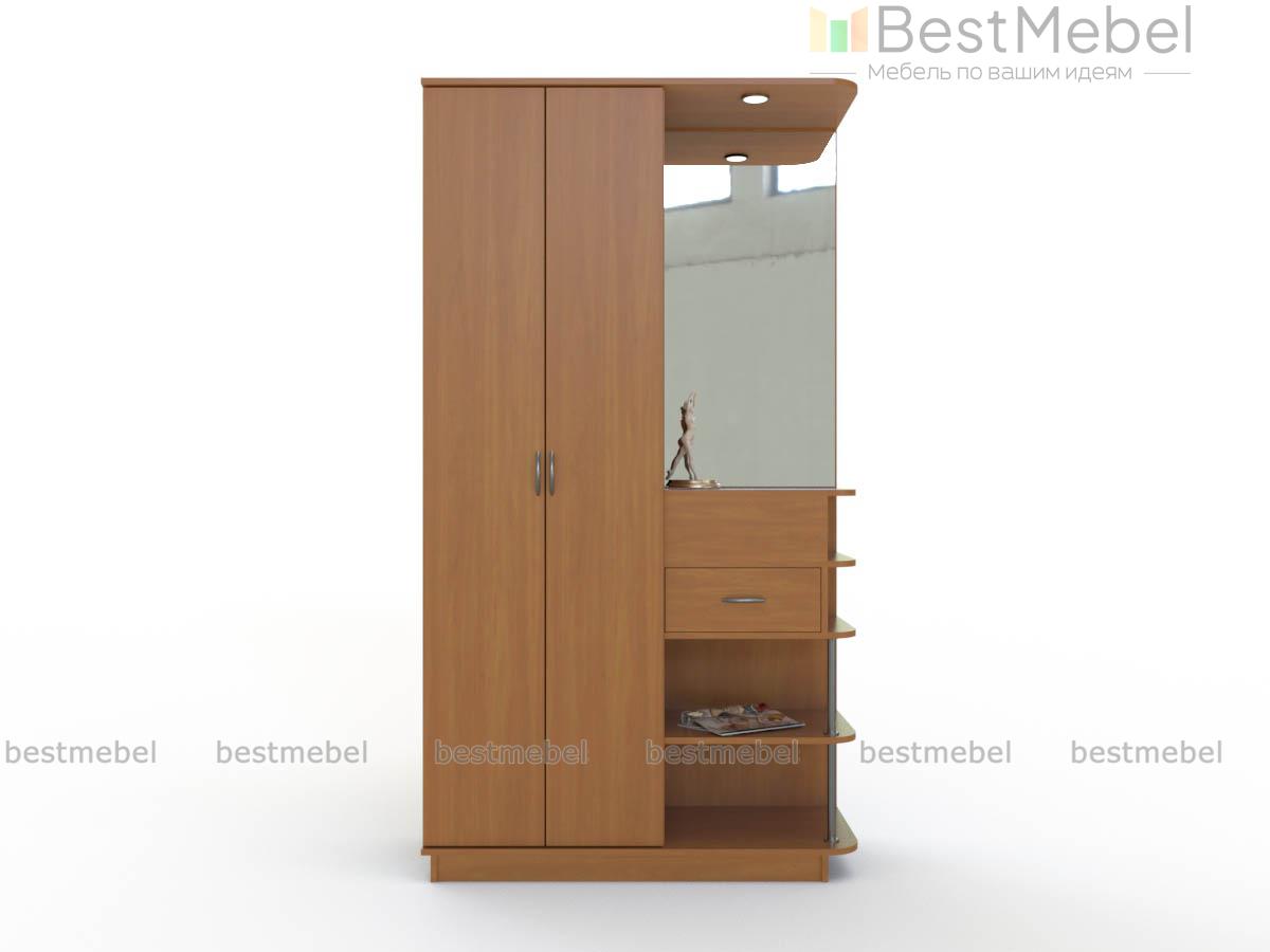 Прихожая Ева-7 BMS выгодно отличается сочетанием компактных размеров и высокой функциональности. Композиция объединила двухдверный платяной шкаф и секцию с большими зеркалами, прямым и торцевым ящичками для мелочей и открытыми обувными полками на хромированной опоре. Прихожая выполнена в нейтральных серых тонах и дополнена козырьком со встроенным точечным освещением. Купить прихожую Ева-7 BMS и обустроить комфортную входную зону вам всегда поможет наш интернет-магазин.