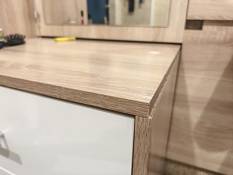 Прихожая Санторо BMS отличается минималистичным дизайном, а природные оттенки с имитацией древесной фактуры добавляют интерьеру тепла. Композиция радует большим количеством модулей: распашной шкаф, торцевой стеллаж, узкий двухдверный пенал, открытая вешалка, обувница и навесное зеркало, дополненное высокой тумбой. Светлые фасады без декора просты в уходе и долговечны. Купить прихожую Санторо BMS с учетом оптимальных размеров вы сможете в нашем интернет-магазине.