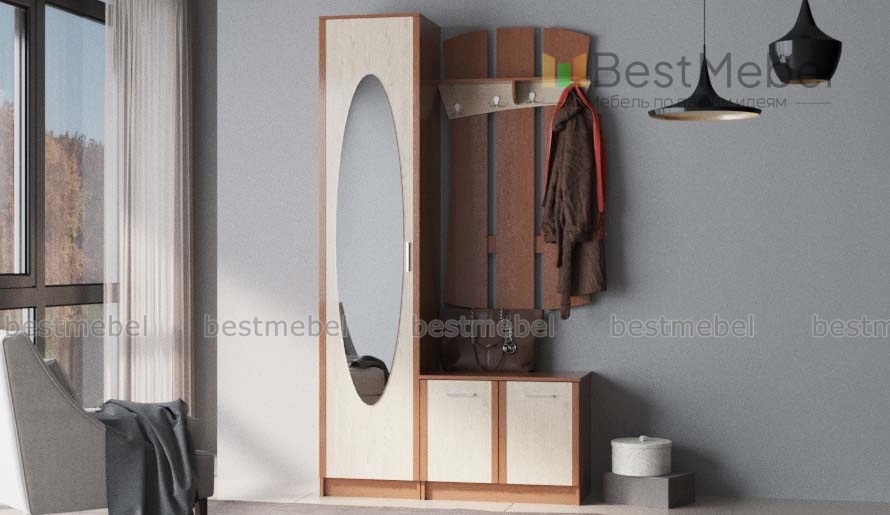 Прихожая Софт ВТ 3930 BMS – элегантный модульный комплект для комфортной входной зоны. Компактные размеры делают прихожую отличным выбором для небольших помещений, в которых важна экономия места. В комплект входят однодверный шкаф для одежды на плечиках, украшенный овальным ростовым зеркалом, открытая вешалка с полкой для головных уборов и распашная тумба. Теплые древесные тона придают композиции особенно уютный, привлекательный вид. Купить прихожую Софт ВТ 3930 BMS недорого приглашаем в наш интернет-магазин.