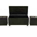 Комплект из трех банкеток – универсальный набор для дома. Он состоит из большой банкетки, напоминающей вместительный сундук, и двух маленьких пуфов, которые можно спрятать в короб большой модели. Такое конструкторское решение очень практично, позволяет при необходимости быстро найти дополнительные места для расположения большой компании. Комплект из трех банкеток изготовлен из дерева, сиденье продублировано ППУ и обтянуто искусственной кожей. Такой комплект хорошо будет выглядеть в любом классическом или современном интерьере.