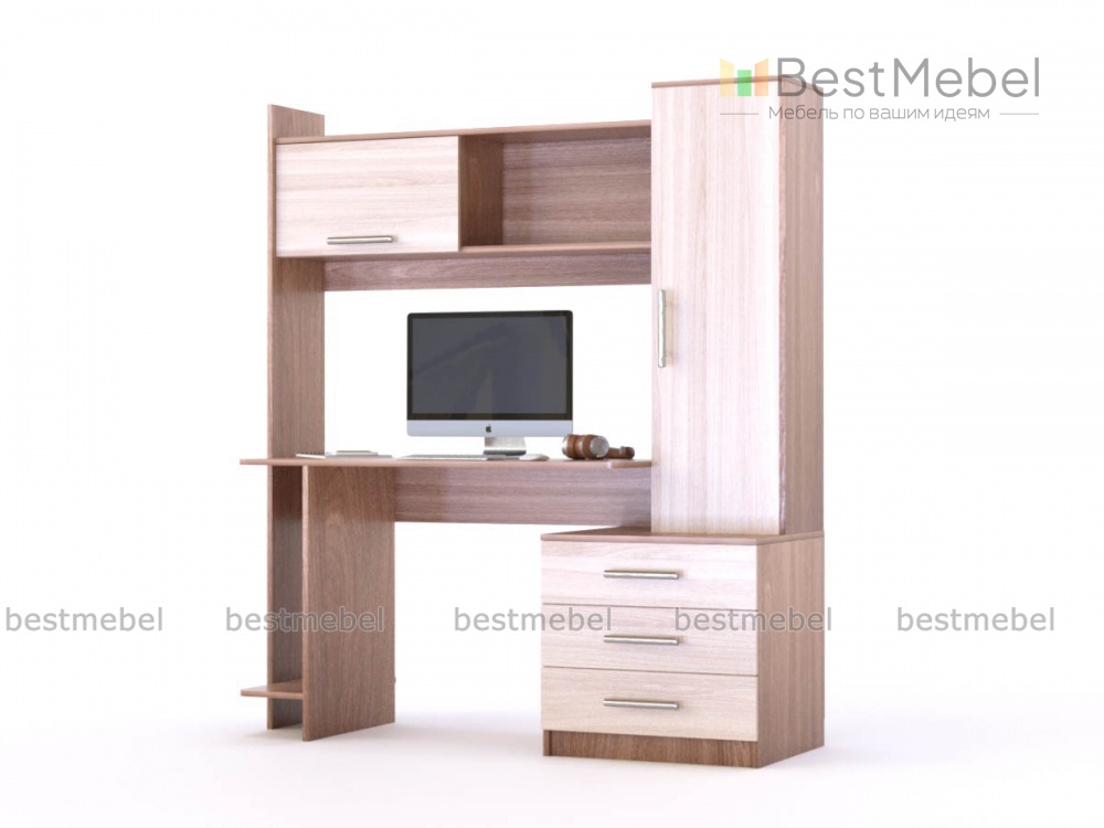 Стол с пеналом Руби-1 BMS станет выбором тех, кто ценит современный дизайн и функциональность. Залогом успешной работы или учебы станет продуманная комбинация компьютерного стола и удобной системы хранения. Столешница прямоугольной формы дополнена нишей под системный блок, надстройкой с глухим шкафчиком и нишей и пеналом с выдвижными ящиками в основании. Купить стол с пеналом Руби-1 BMS вы сможете в нашем интернет-магазине от производителя BestMebelShop!