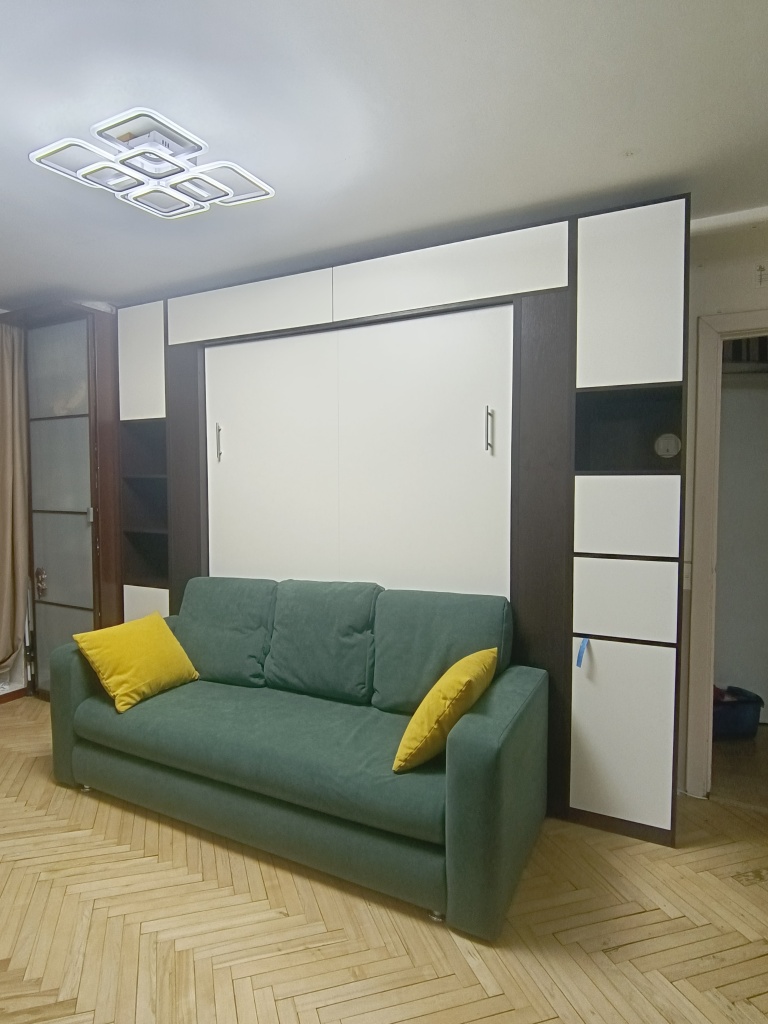 Мы не рекомендуем покупать пружинные матрасы к шкафу-кровати. Стоит отдавать предпочтение беспружинным изделиям. Это связано с тем, что поведение пружин в вертикальном положении матраса невозможно предсказать. Матрас быстро подвергается деформации и смещению слоев. Идеальным вариантом для откидной модели будет лёгкий беспружинный матрас, основу которого составляют современные материалы, не имеющие в составе пружины.