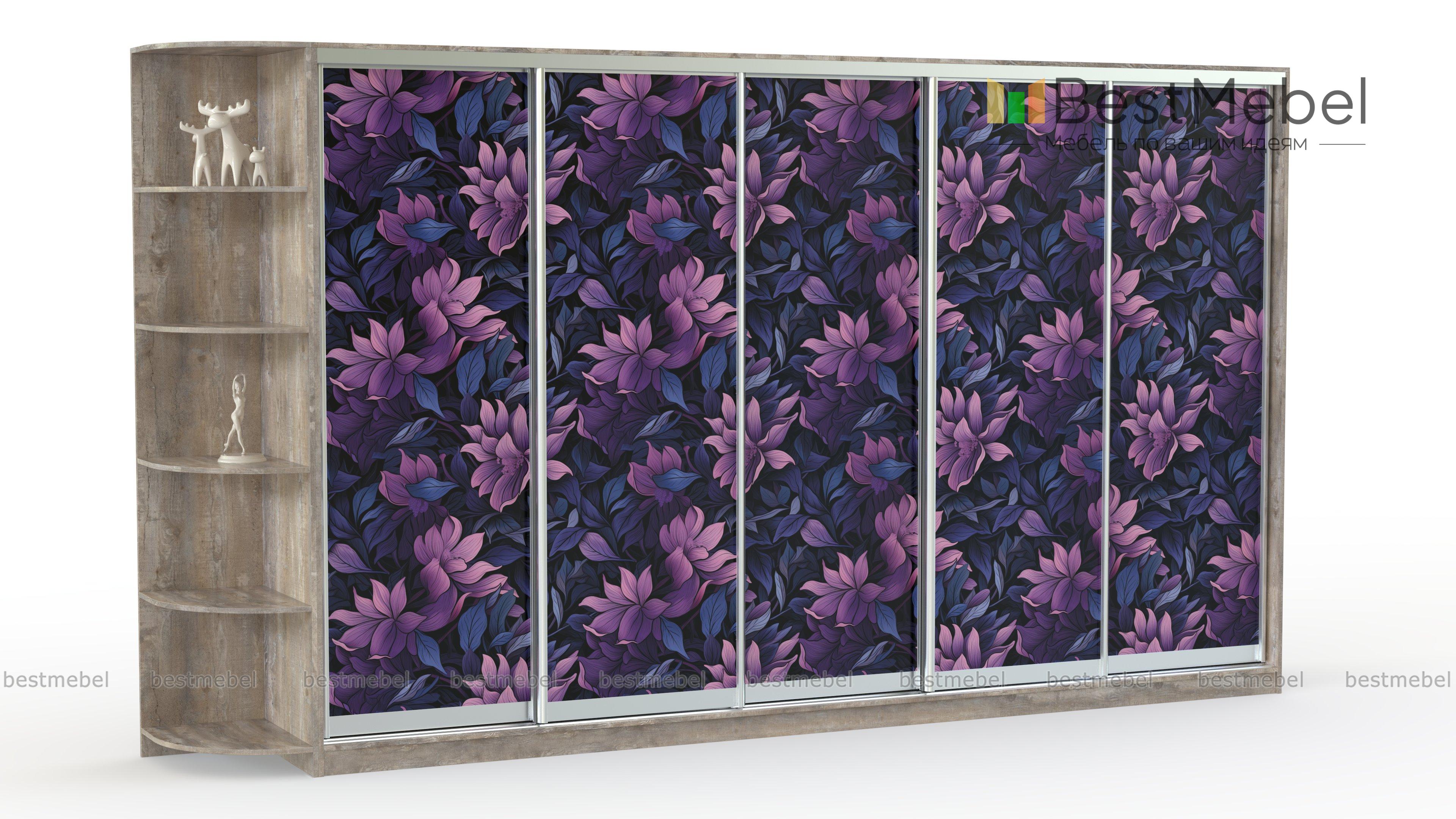 Шкаф-купе Маки 150 BMS с ярким акцентным фасадом, украшенным фотопечатью, станет главным элементом дизайна спальни или гостиной. Крупногабаритная модель, оснащенная пятью раздвижными дверцами, занимает всю стену и прекрасно подходит для хранения семейного гардероба. Практичное дополнение шкафа – угловой книжный стеллаж со скругленными для безопасности полками. Купить шкаф-купе Маки 150 BMS приглашаем в наш интернет-магазин с возможностью выбора цвета и размеров.