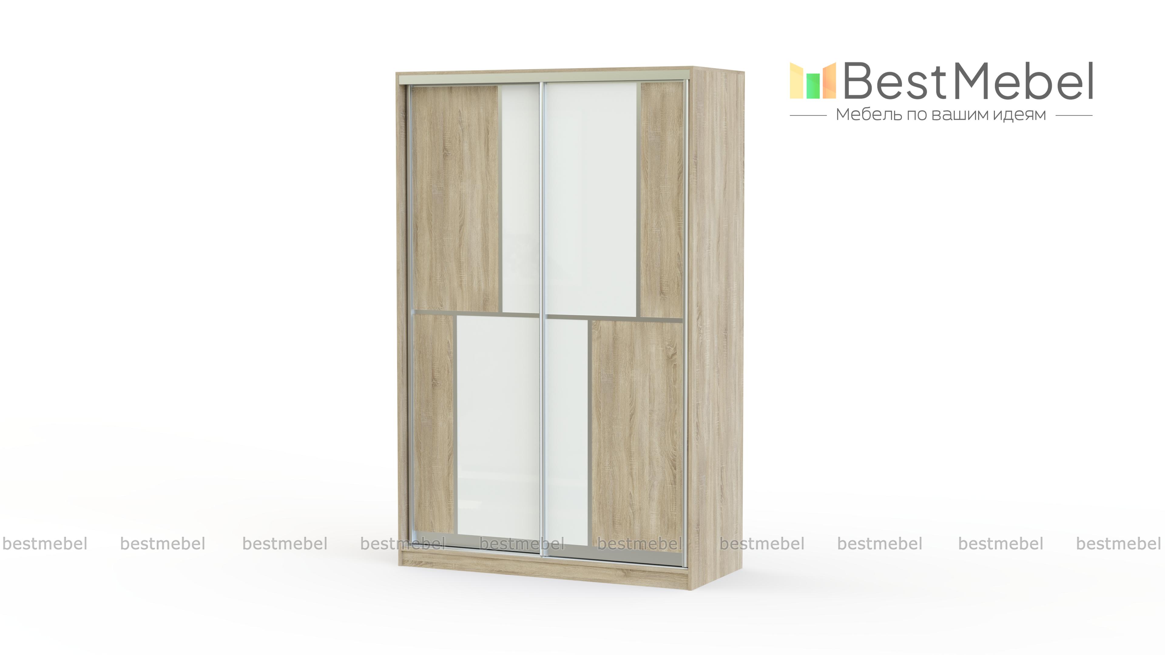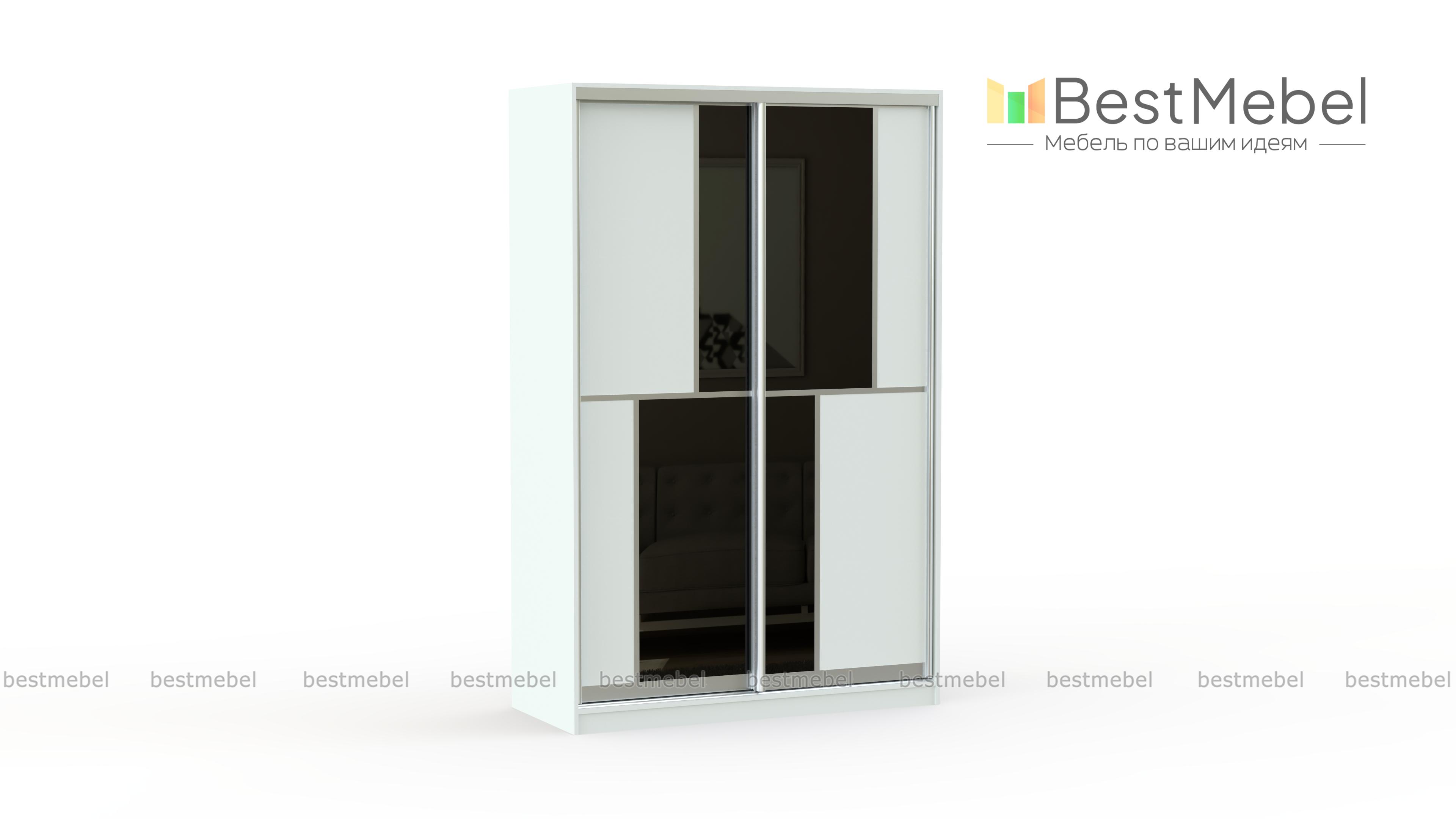 Шкаф-купе Мерин BMS имеет яркий оригинальный дизайн и вместительное внутренне пространство для хранения вещей. Две раздвижные двери декорированы стеклом белого и черного цвета. Геометрические формы, созданные при помощи комбинации двух оттенков стекла придают шкафу индивидуальности и лаконичности. Прочный алюминиевый профиль и надежная фурнитура делают ежедневное открывание и закрывание дверей плавным и комфортным.