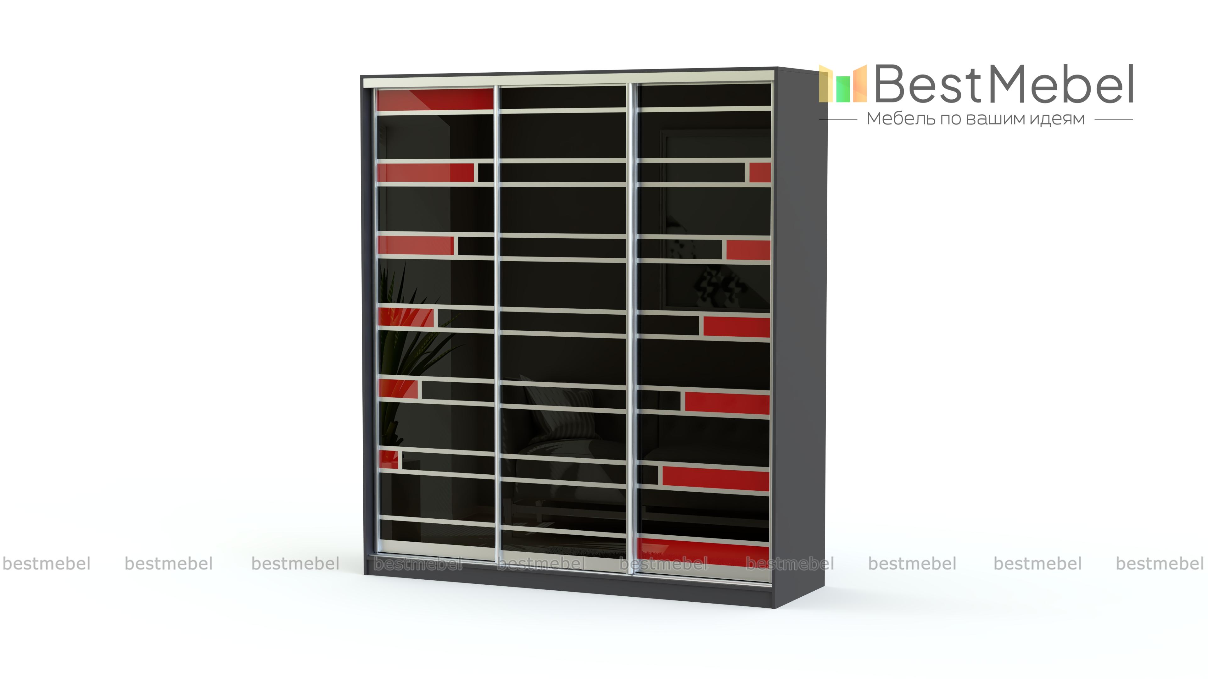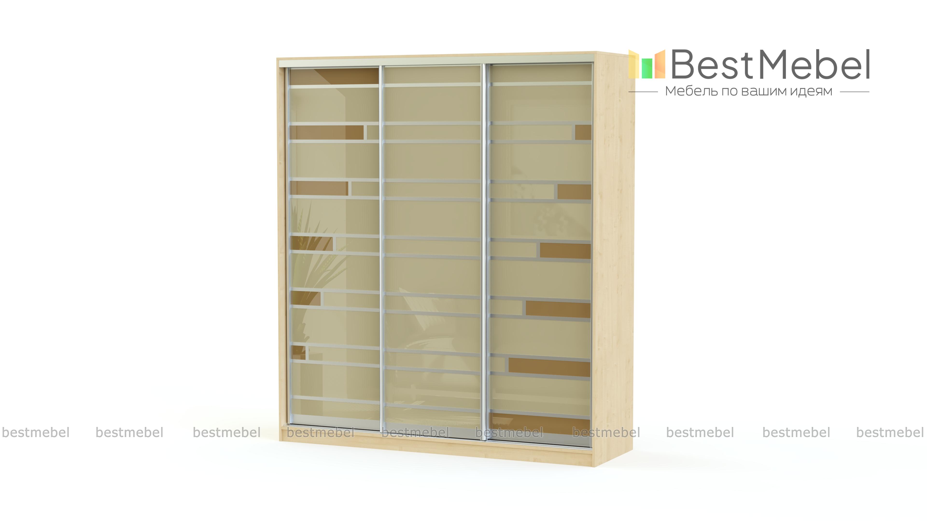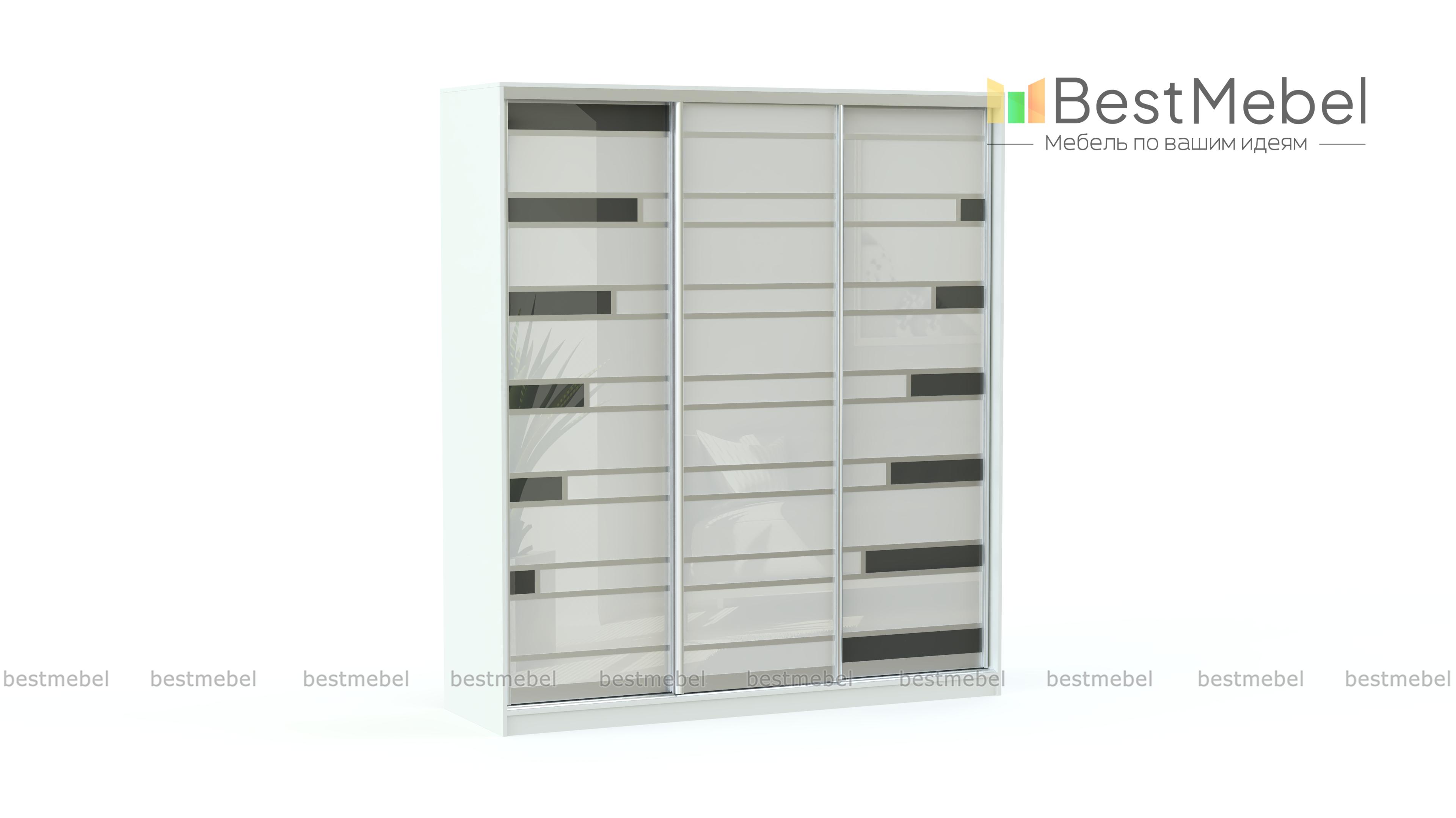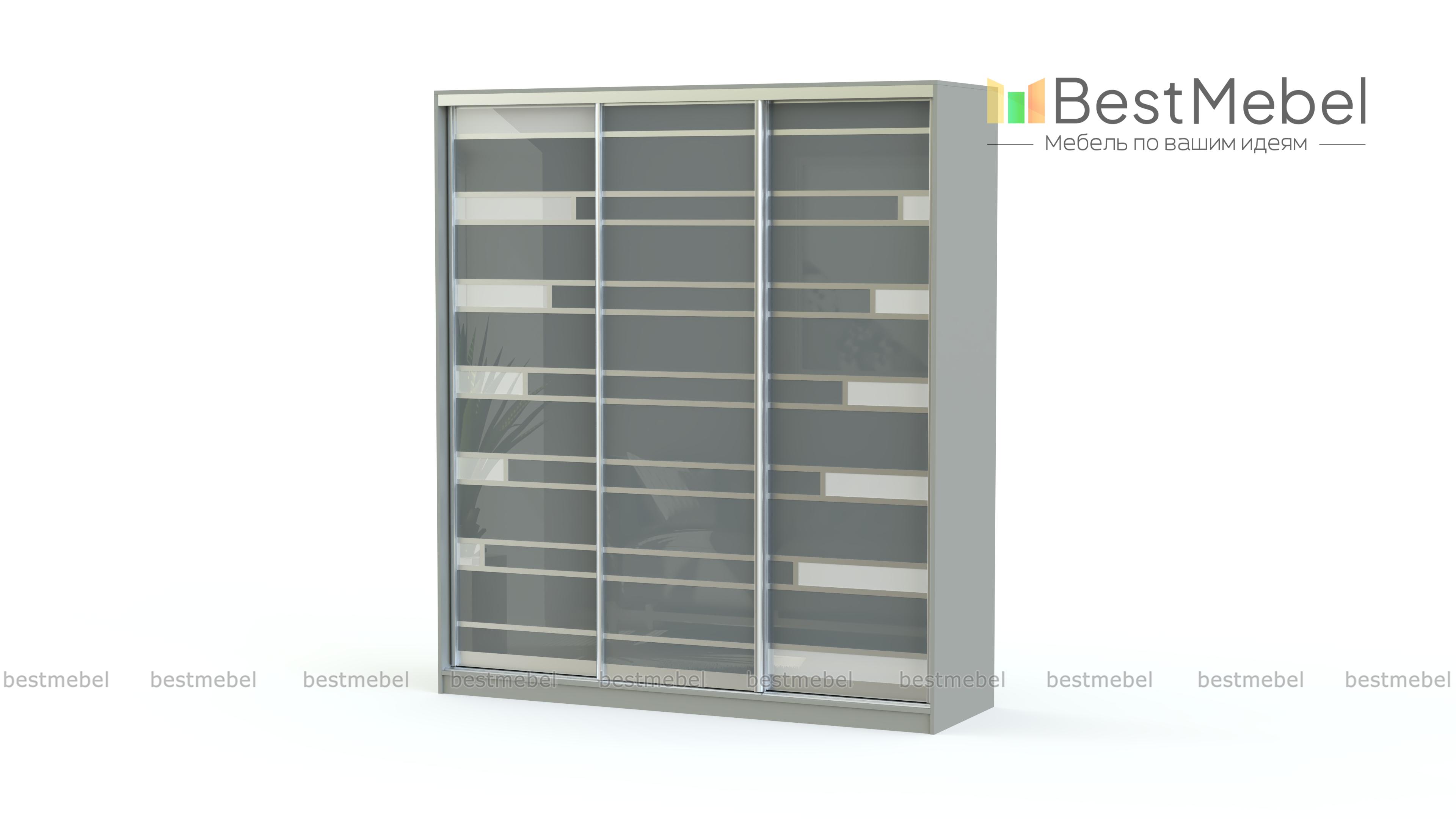Шкаф-купе Роби BMS - удобная система хранения в современном стиле. Светлая палитра скрадывает габариты широкой трехдверной модели, а раздвижной фасад выполнен из стекла, тонированного пленкой Оракал, с контрастными вставками и отделкой серебристым профилем. Возможность выбора размеров и компоновки позволяет гармонично вписать шкаф в интерьер и разместить большое количество вещей. Купить шкаф-купе Роби BMS в оттенках из нашего каталога приглашаем на сайт интернет-магазина.