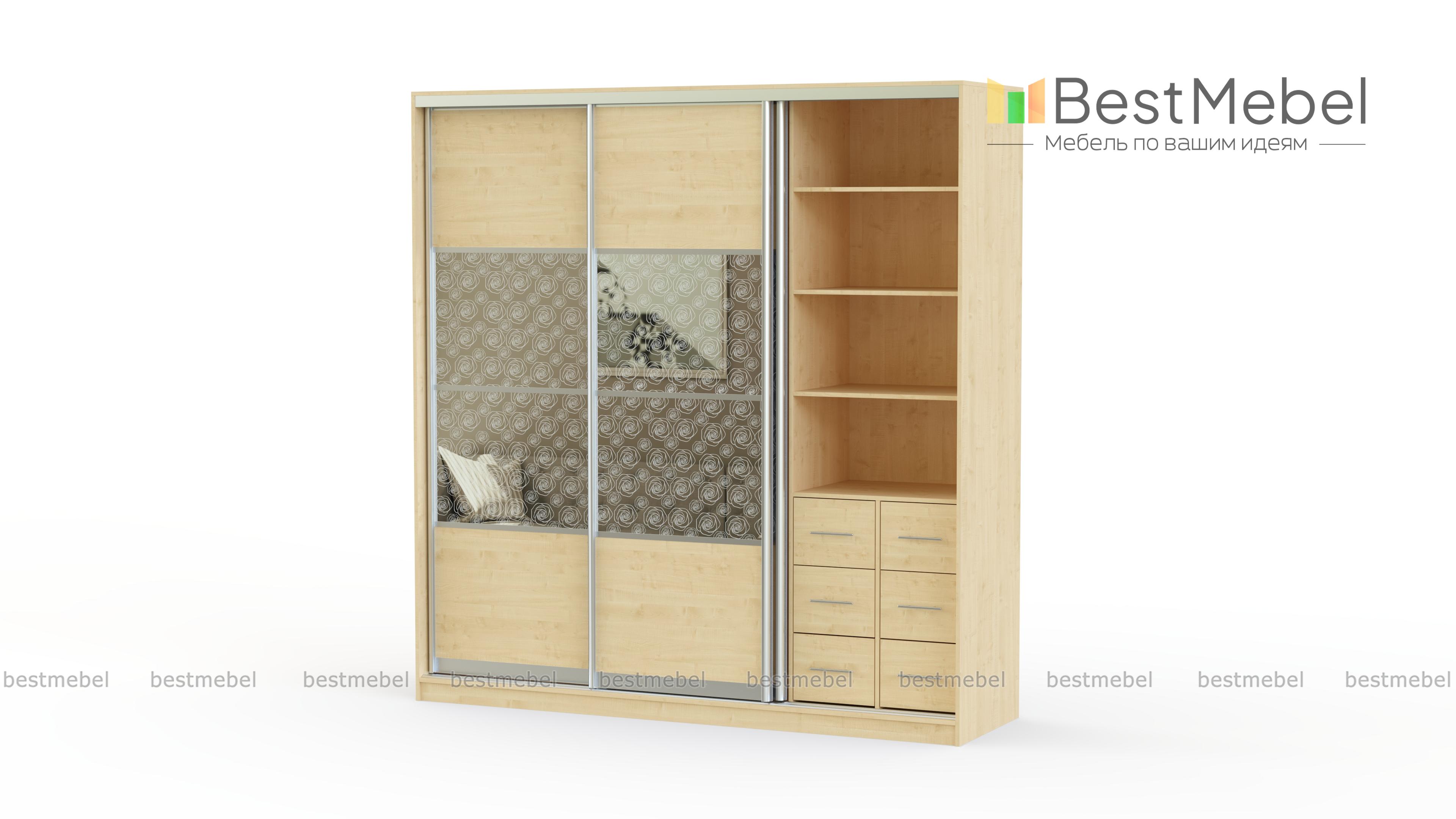 Шкаф-купе Роза-3 BMS – великолепная серийная продукция. Трёхстворчатый предмет мебели имеет в своём наполнении богатую компоновку, сочетающую в себе выдвижные миниатюрные ящики, полки, штангу для плечиков. Всё это позволяет хозяйке организовать систематизированное хранение повседневной и деловой одежды, постельного белья, аксессуаров, обуви. Дверки изделия легко и беспрепятственно ездят по своим направляющим, обеспечивая отличный доступ к содержимому. Более того, очаровательные вставки с узорами являются основным декорированием модели. А вместе с выдержанным однотонным оттенком, они буквально излучают тепло и уют. Купить шкаф-купе Роза-3 BMS можно по низкой стоимости и с учётом бесплатной доставки на нашем сайте.