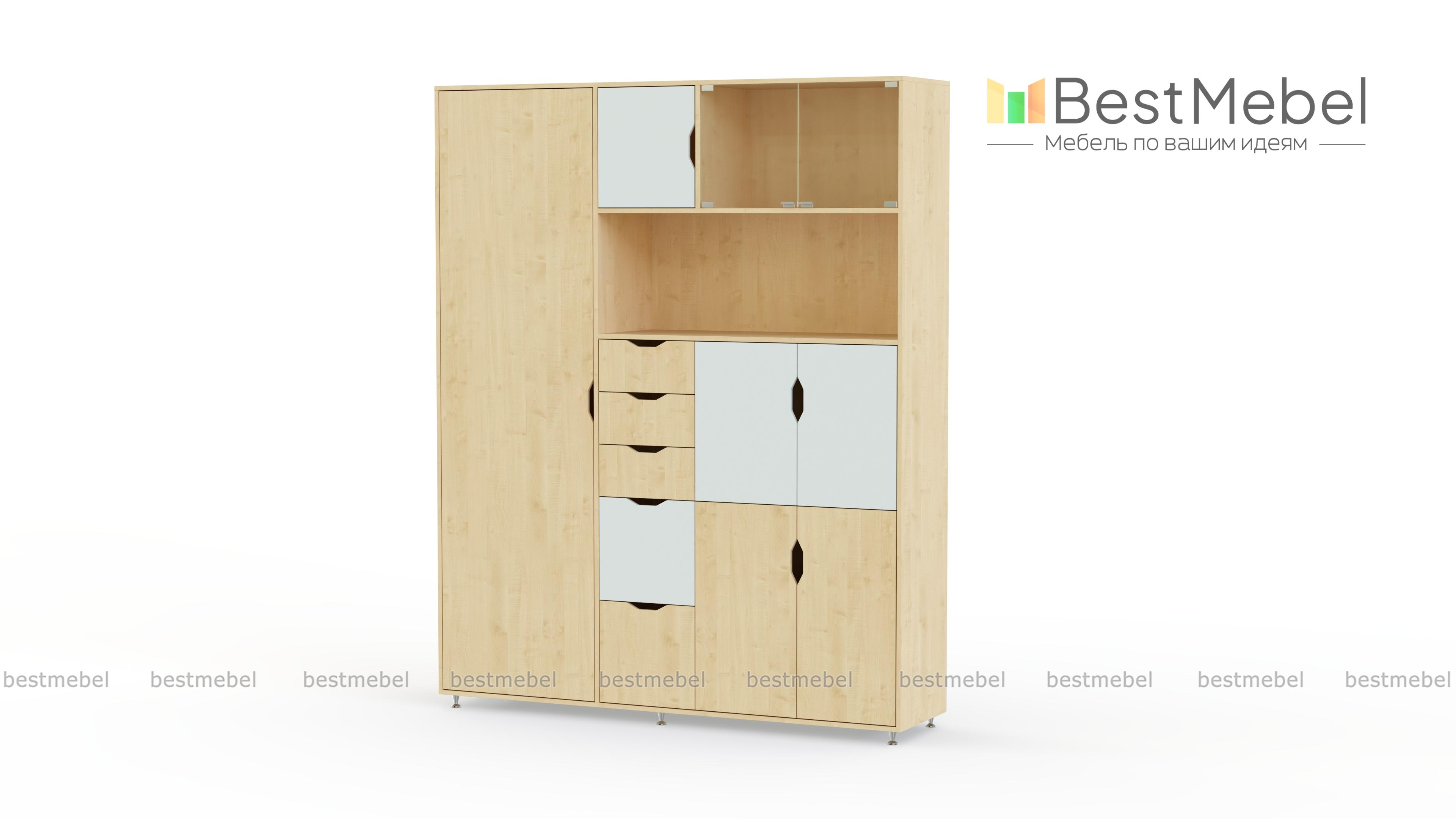 Шкаф комбинированный Авгий BMS отличается универсальным современным дизайном, который гармонично дополнит деловой стиль офиса. Оборудованный продуманной системой хранения, шкаф в светлых древесных тонах позволит упорядочить размещение документов, канцелярских принадлежностей и эффектно разместит предметы декора. В комплекте однодверный шкаф, распашные отделения, выдвижные ящики, витринные секции и ниша. Купить шкаф комбинированный Авгий BMS и создать эстетичный и функциональный интерьер вам поможет наш интернет-магазин.