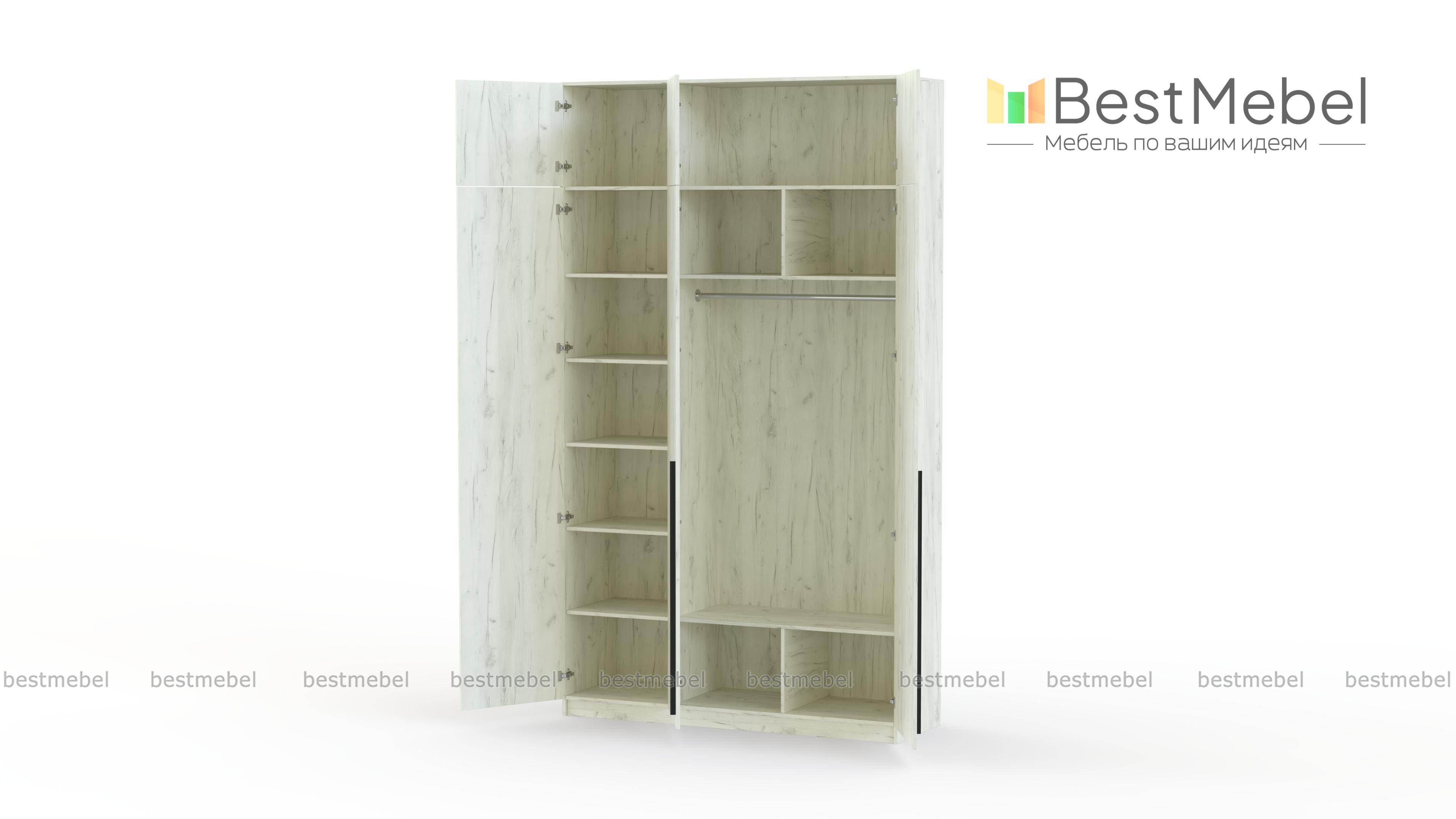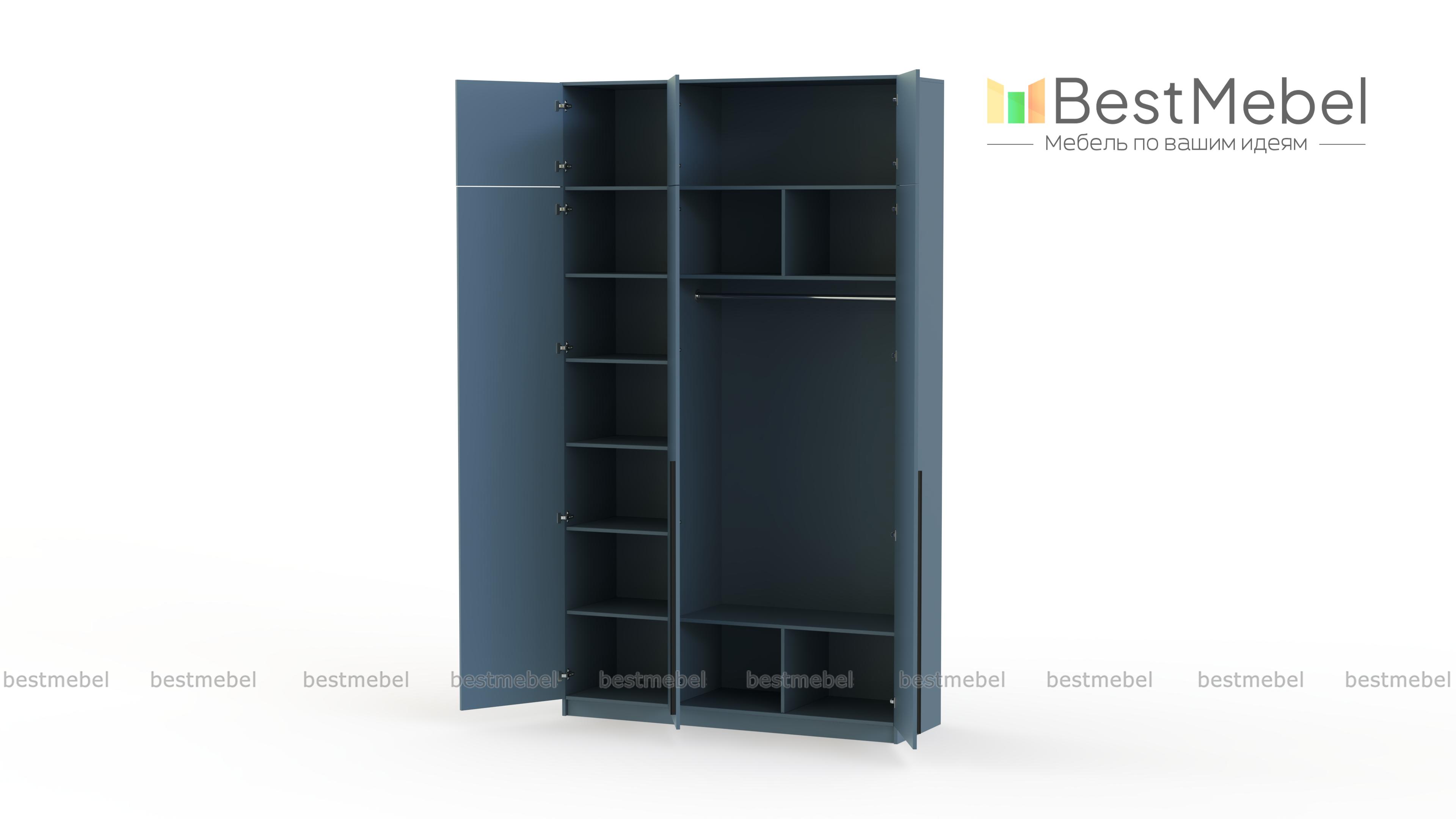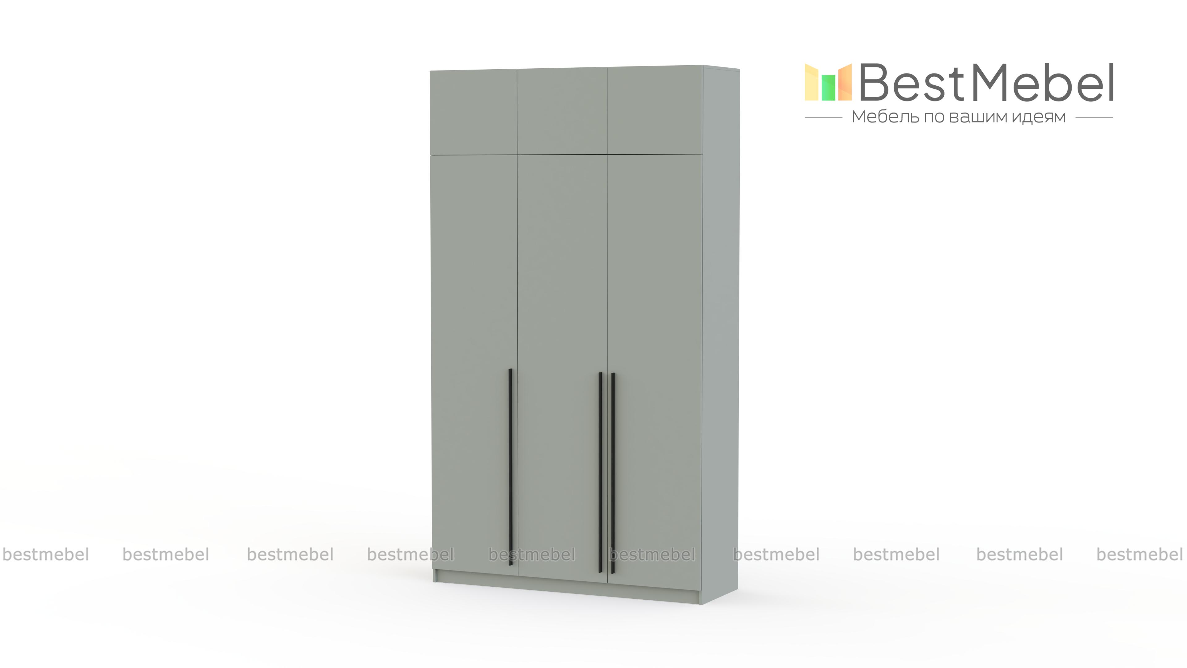 Шкаф распашной Айва 19 BMS с антресолью максимально эффективно использует пространство — от пола до потолка. Для вашего повседневного гардероба и редко используемых вещей предусмотрены просторные полки на разной высоте и платяная штанга. Сплошной фасад выполнен в классическом светлом оттенке, на дверцы установлены удлиненные контрастные ручки. Купить шкаф распашной Айва 19 BMS с изготовлением по индивидуальным размерам вы сможете на сайте нашего интернет-магазина.