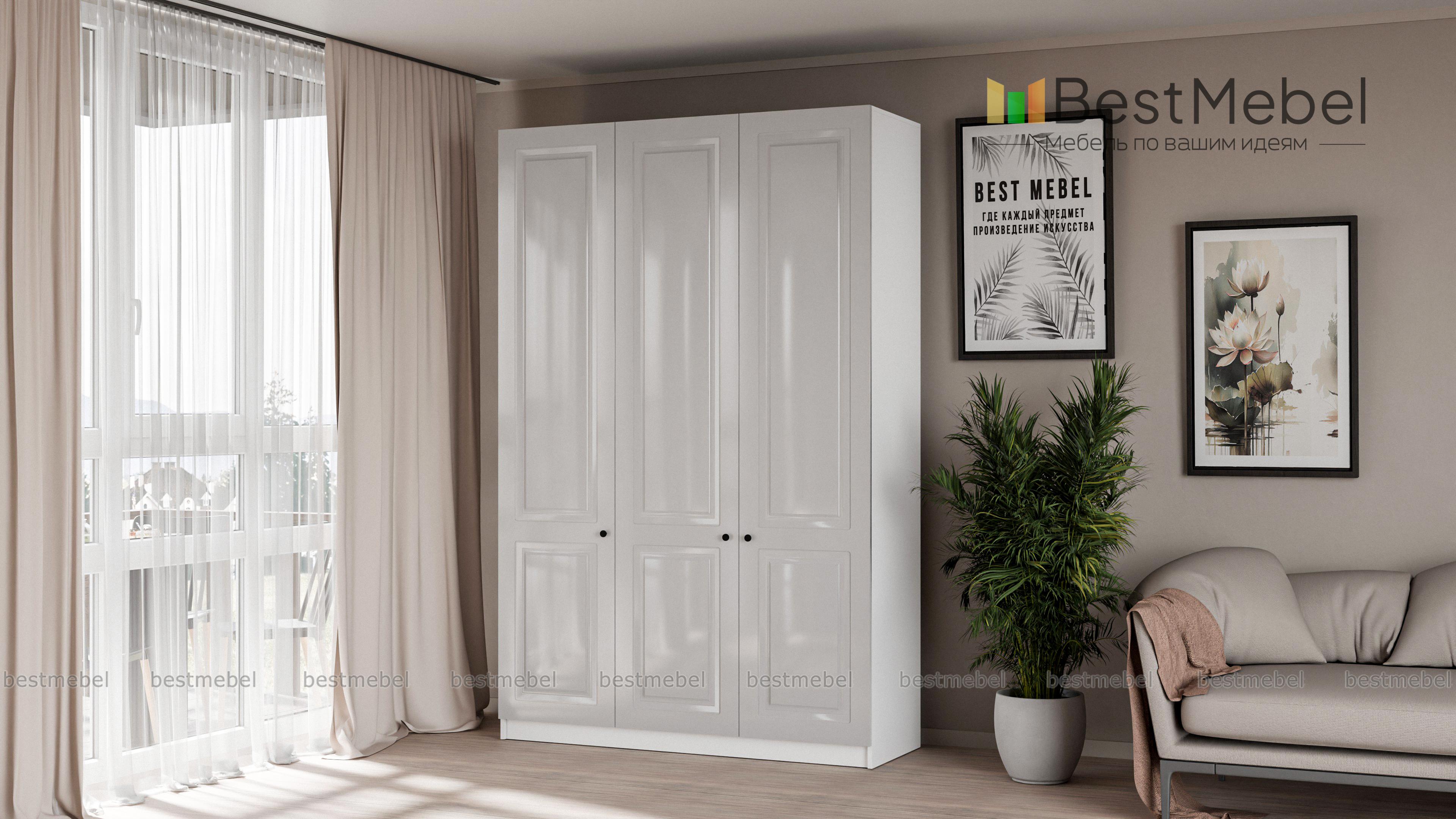 Шкаф распашной Бонн 3 BMS создан в современном лаконичном стиле, прекрасно сочетаясь с большинством интерьеров. Трехдверный гардероб оборудован как штангой, так и рядом полок, позволяя аккуратно разместить вешалки с одеждой, обувь, домашний текстиль. На светлых фасадах с широкими фрезерованными рамками - контрастные стильные ручки. Купить шкаф распашной Бонн 3 BMS в удобном размере и любом оттенке из каталога вы сможете на сайте нашего интернет-магазина.