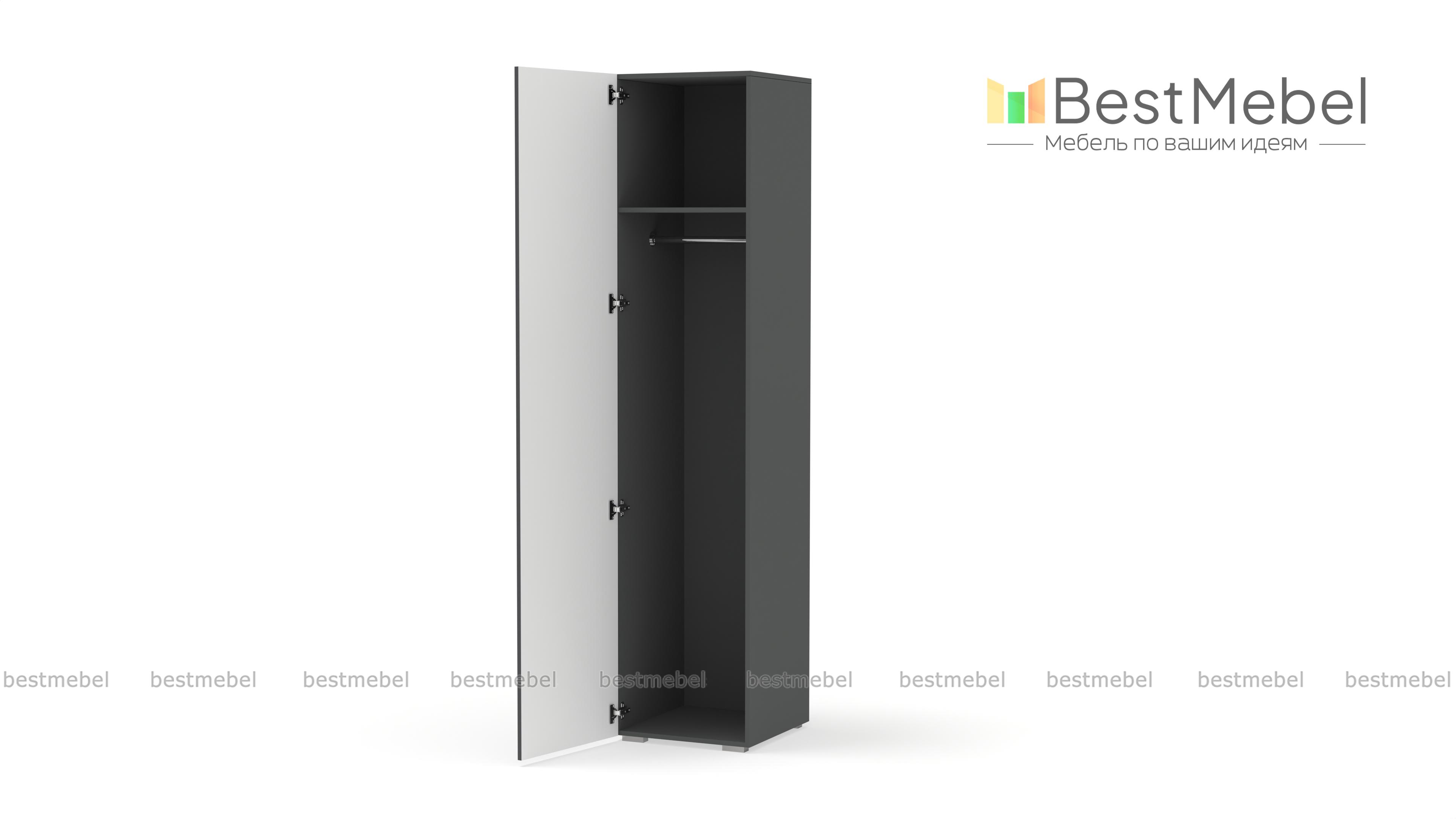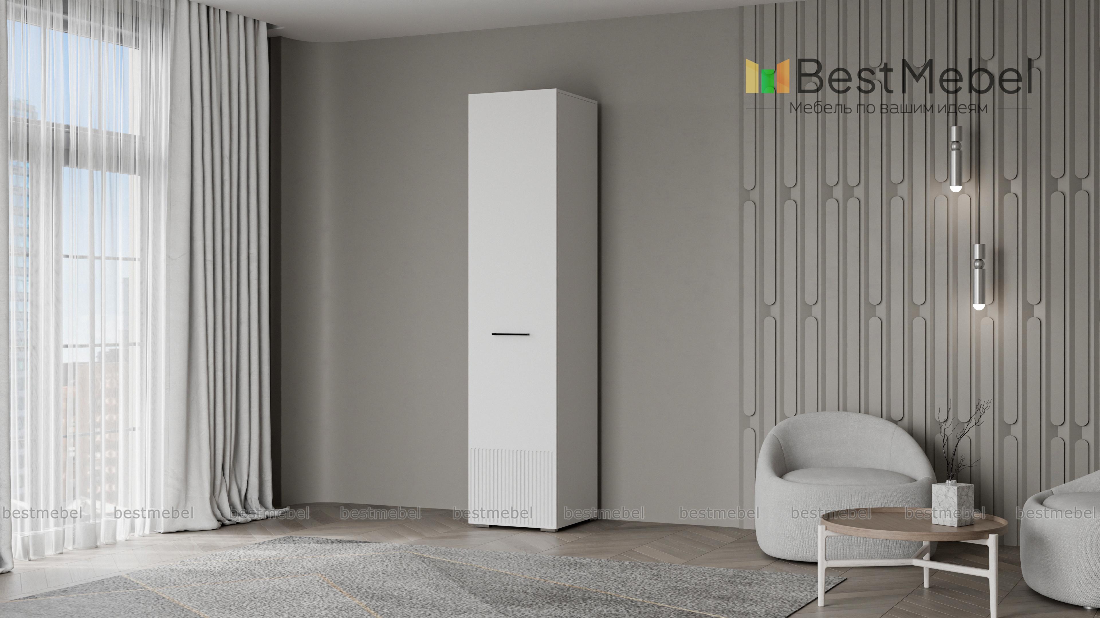 Шкаф распашной Декарт 1 BMS вы сможете использовать отдельно и в сочетании с другими шкафами серии. Пенал в светлом дизайне с фрезерованным декором идеально подходит для компактных комнат. Компоновка с вешалкой и верхней полкой — комфортная база для повседневных вещей, а распашная дверца со стильной ручкой-скобой обеспечивает им отличный обзор. Купить шкаф распашной Декарт 1 BMS приглашаем на сайт нашего интернет-магазина, по желанию изменив цвет и размеры.