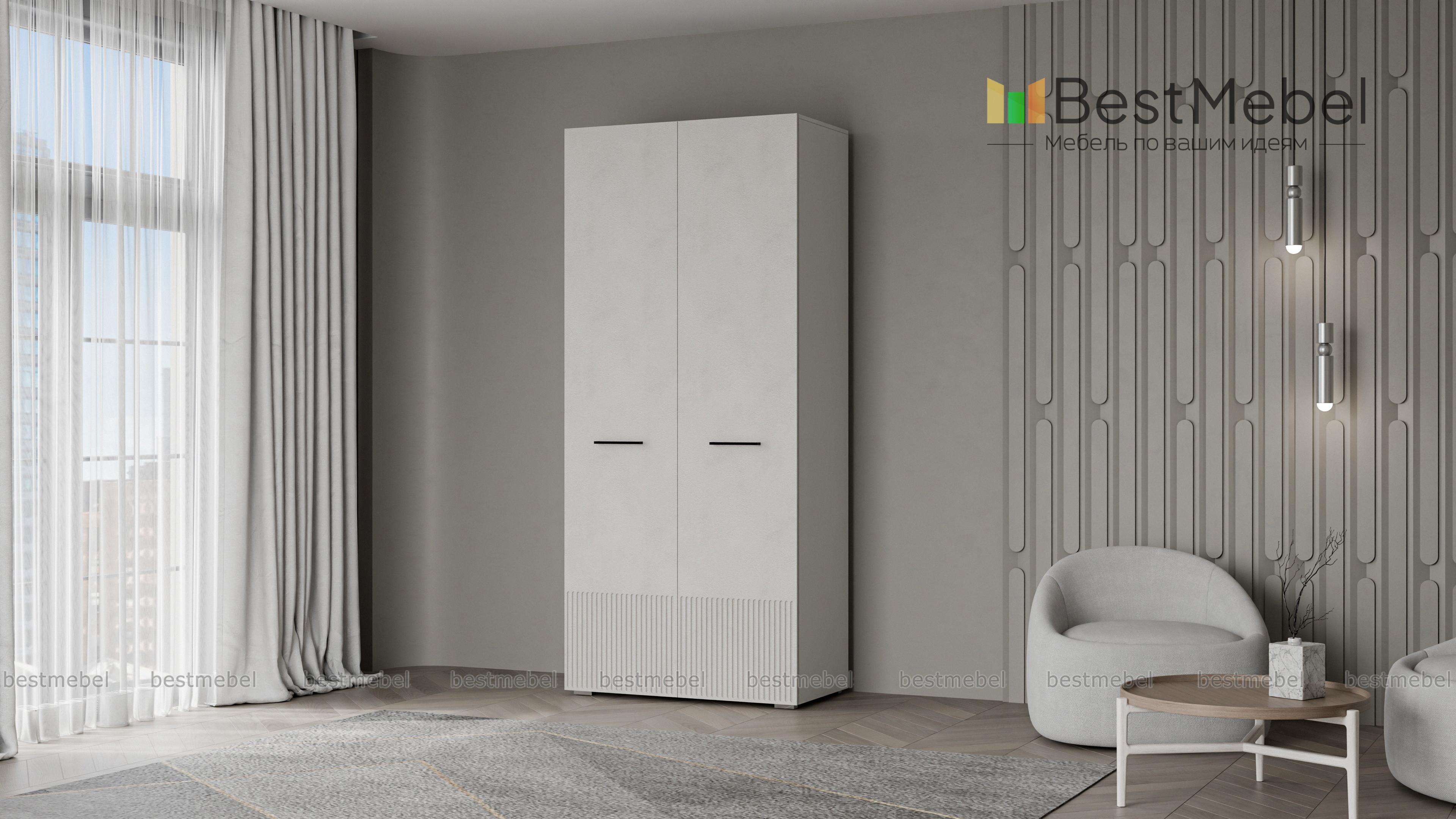 Шкаф распашной Декарт 2 BMS поможет удобно расположить повседневные вещи даже при малом метраже. Система хранения компактной двухдверной модели включает в себя штангу для одежды и расположенную сверху полку для коробок и других габаритных предметов. Фасад в цвет корпуса выполнен из МДФ и оформлен стильным рельефом, поперечные ручки-скобы добавляют стильный акцент. Купить шкаф распашной Декарт 2 BMS в любом размере и оттенке из нашего каталога приглашаем на сайт интернет-магазина.