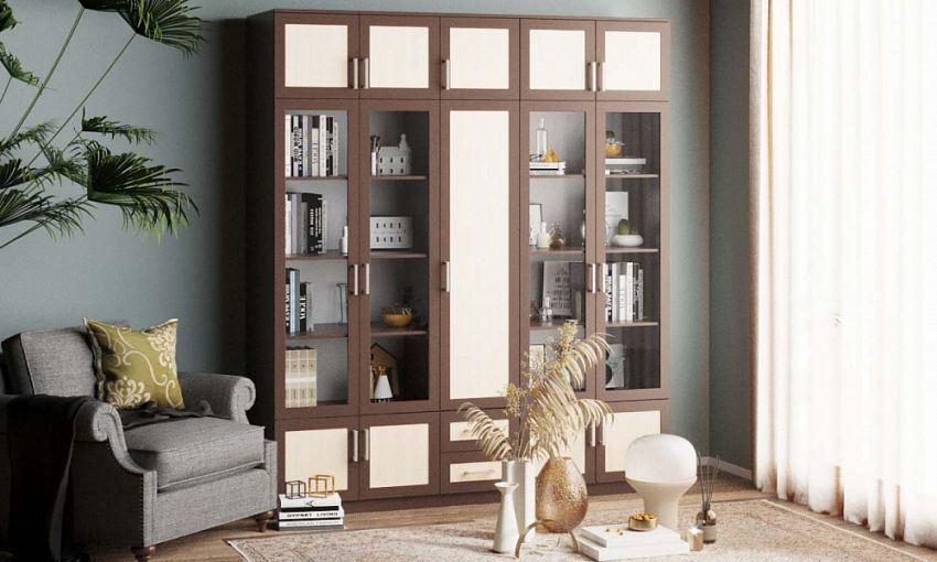 Шкаф распашной Фауст 19 BMS станет альтернативой стенке в интерьере современной гостиной. Крупногабаритная модель имеет практичную комбинированную конструкцию и оборудована всем необходимым для хранения домашнего текстиля, посуды, книг и разнообразных бытовых вещей - глухими распашными отделениями, витринами, выдвижными ящиками и антресолью. Классические рамочные фасады шкафа элегантно смотрятся в контрастных древесных тонах. Купить шкаф распашной Фауст 19 BMS вы сможете в нашем интернет-магазине.