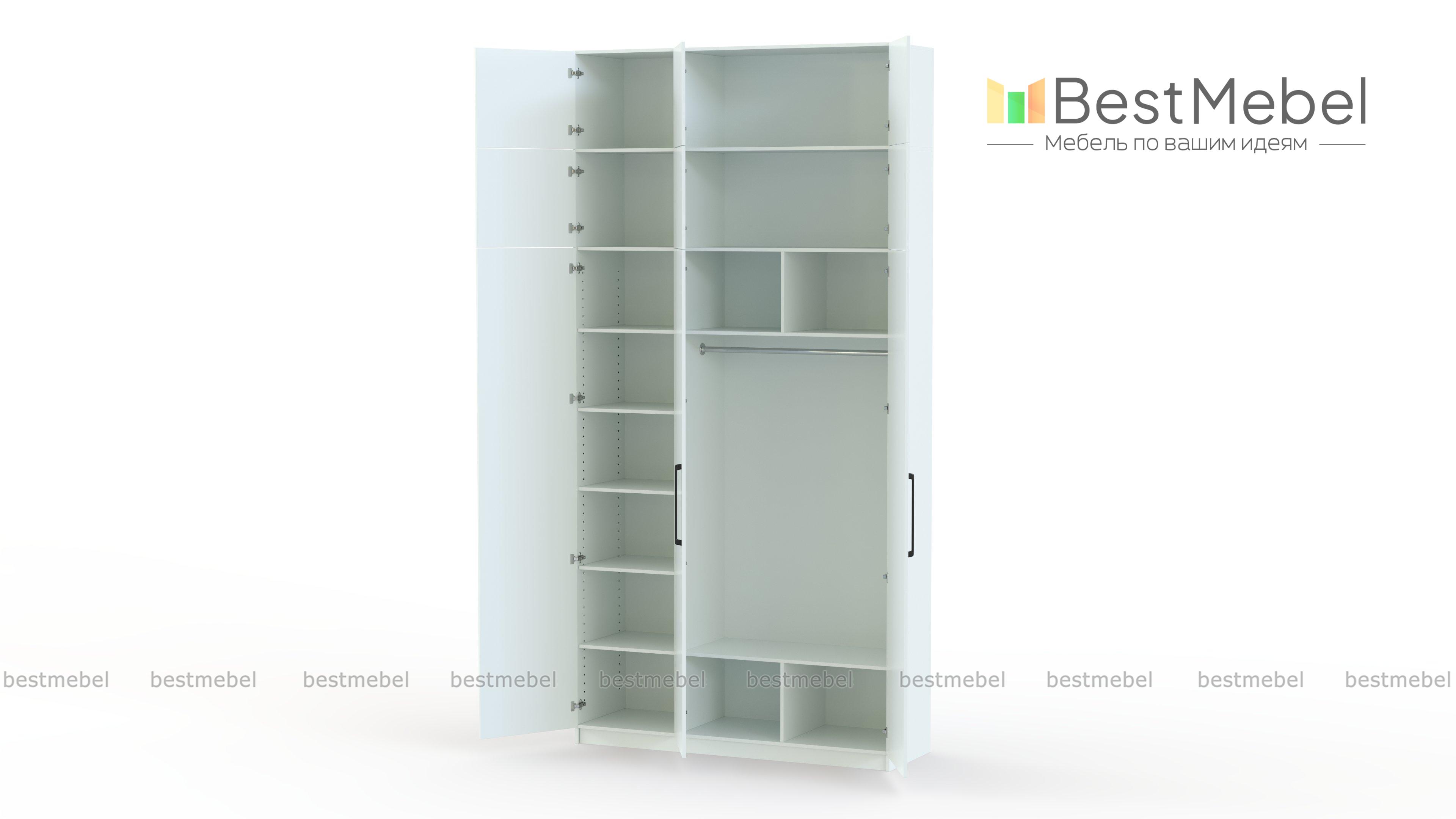Шкаф распашной Остин Нео 9 BMS оборудован платяным отделением, бельевой секцией слева и двумя рядами антресолей. Благодаря минималистичному исполнению модель универсальна и подходит для самых разных стилевых решений. Особенность конструкции шкафа - в наличии перфорации на боковых стенках, которая дает возможность отрегулировать высоту полок по своему вкусу и разместить габаритные вещи. Купить шкаф распашной Остин Нео 9 BMS с учетом необходимых размеров вы сможете в нашем интернет-магазине.