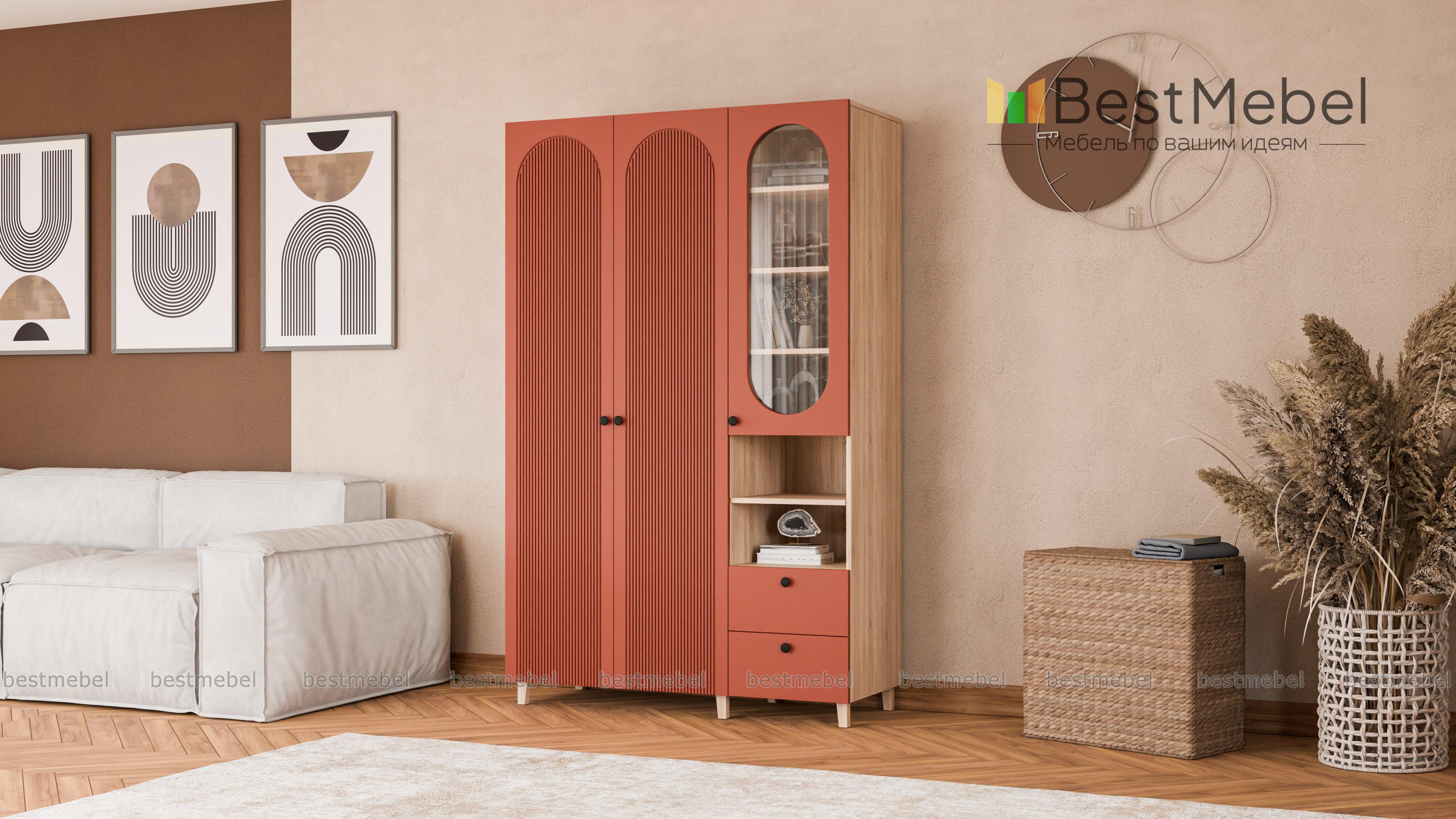 Шкаф распашной Рене 12 BMS обеспечит разные варианты хранения благодаря функциональной конструкции. Слева располагается одежная штанга за распашными дверцами, а справа — застекленные полки, ниши и пара выдвижных ящиков. Высокие ножки добавляют этой элегантной фрезерованной модели в светлом оформлении легкости и «воздушности». Купить шкаф распашной Рене 12 BMS вы сможете недорого на сайте нашего интернет-магазина, подобрав размеры, цвет и фурнитуру.
