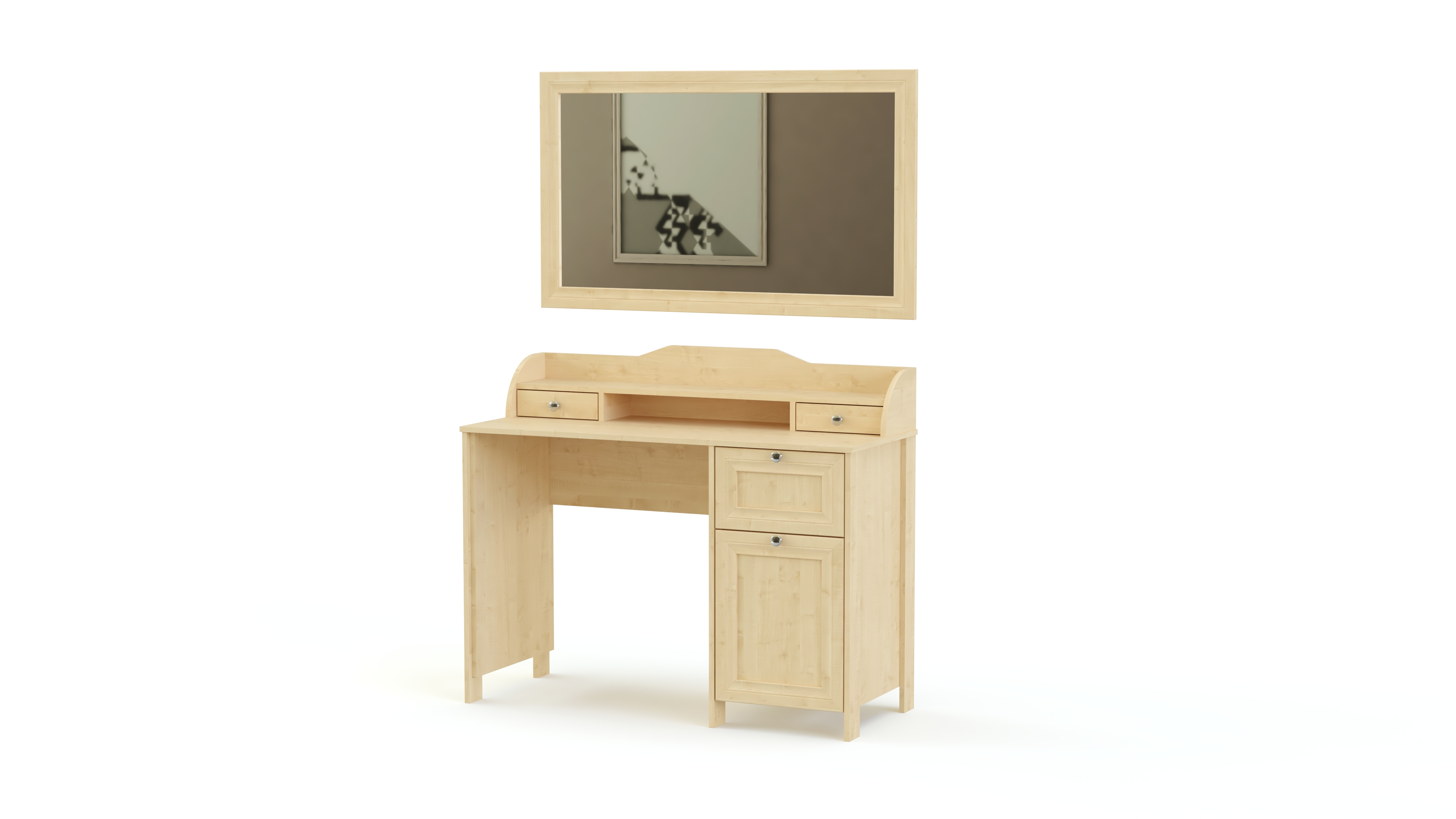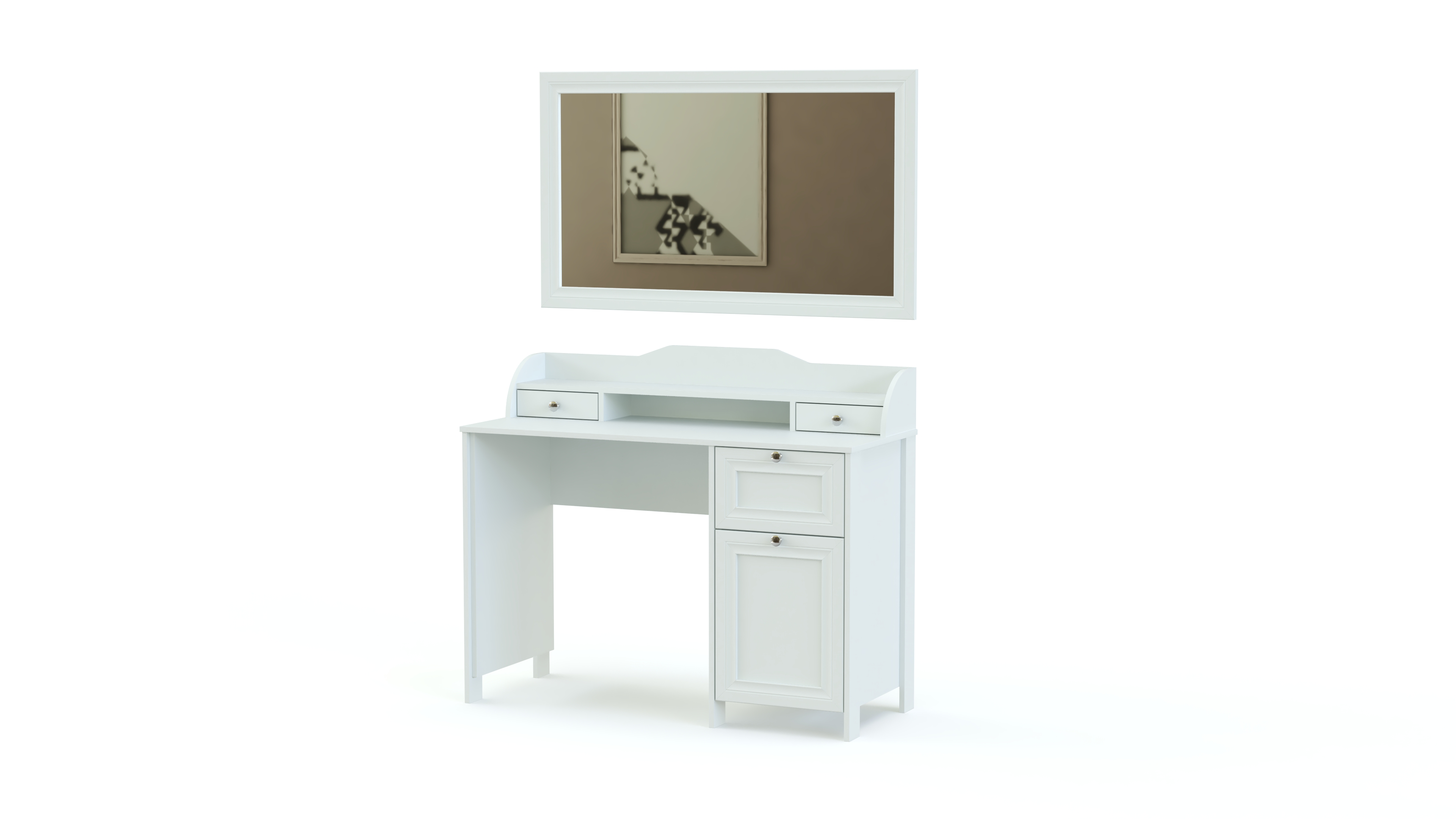 Элегантный классический комплект не выйдет из моды и прослужит вам долгие годы. Спальня Соната BMS состоит из нескольких модулей, которые удобно компоновать по своему вкусу. Это вместительный четырехдверный шкаф с зеркалами в полный рост, комод для белья и мелочей, туалетный столик с навесным зеркалом, кровать и прикроватные тумбы. Мебель выполнена в модных натуральных белых оттенках, а особенное изящество и легкость гарнитуру придают высокие ножки и металлическая фурнитура.