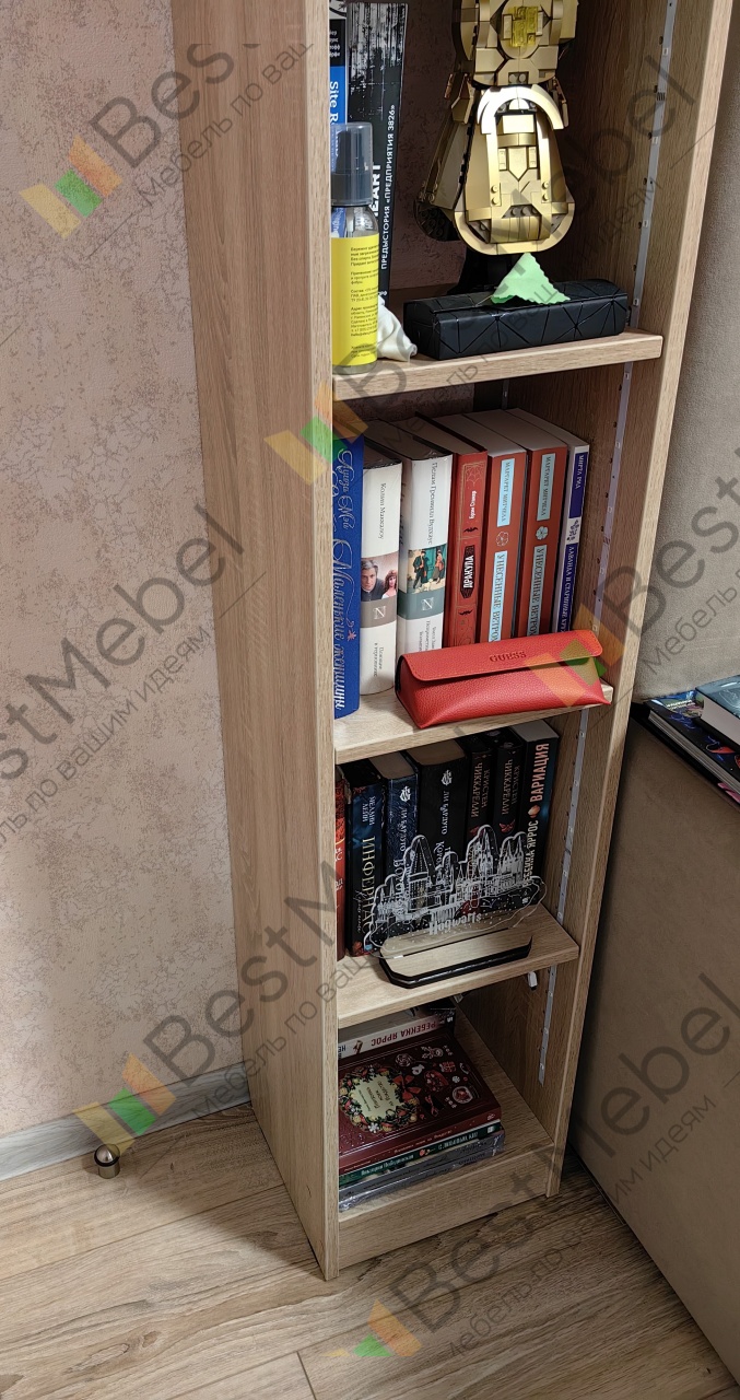 Заказ 00000267739Отличный стеллаж: крепкий, собирается элементарно. Сделали по индивидуальным параметрам, так что он идеально вписался в пространство между шкафами.
