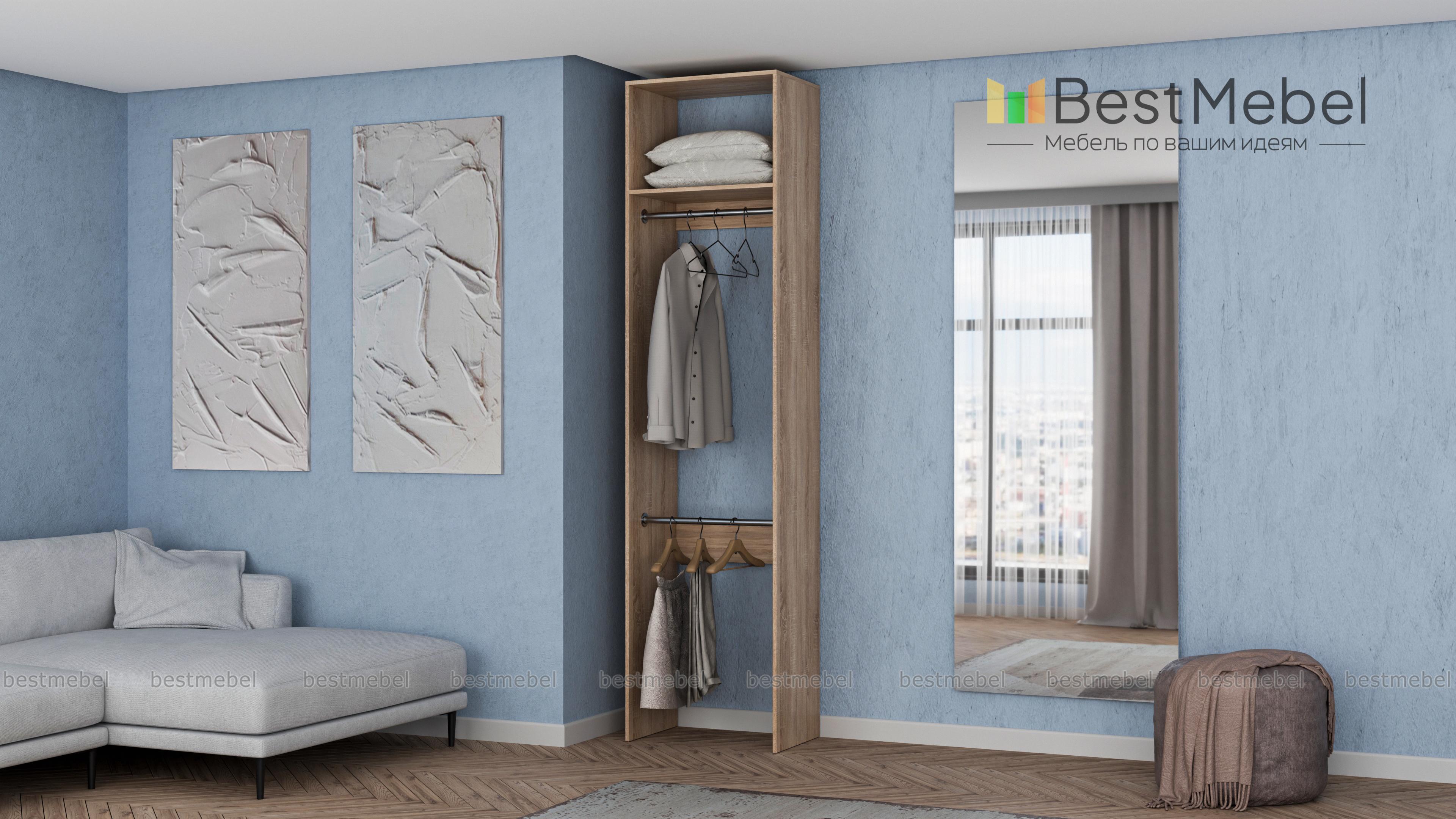 Стеллаж для одежды Мирта 30 BMS имеет небольшую ширину и прекрасно подходит для малогабаритных помещений. Открытая легкая конструкция без задней стенки укомплектована двумя штангами для вешалок — вверху и внизу, а также одной верхней полкой. Для изготовления стеллажа использована ламинированная плита — экологичный и износостойкий материал. Купить стеллаж для одежды Мирта 30 BMS вы сможете в нашем интернет-магазине в любом удобном размере и оттенке из каталога.